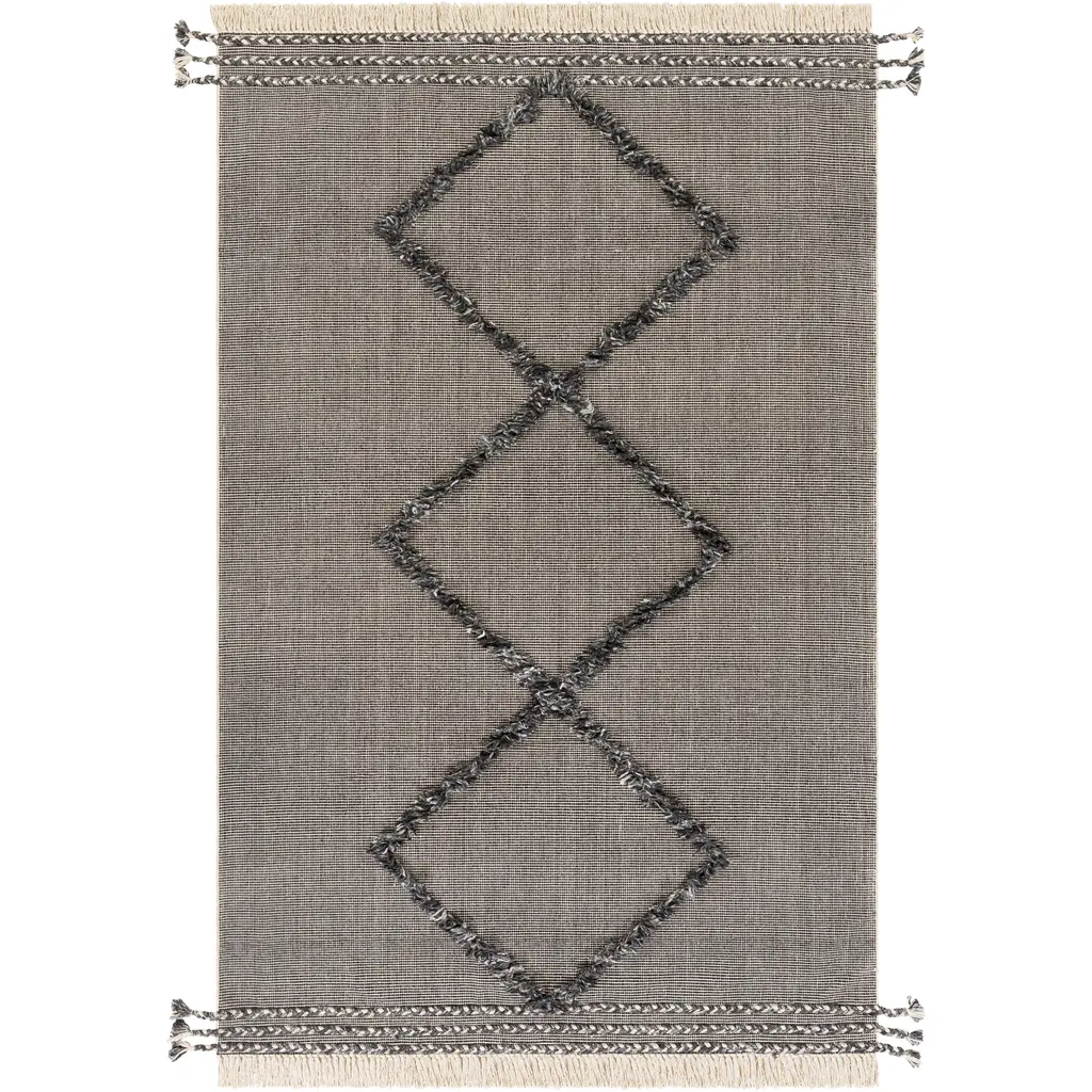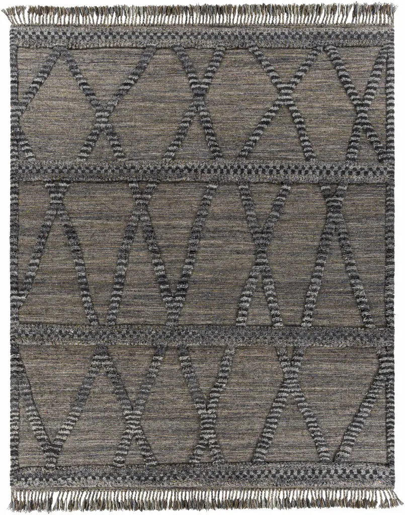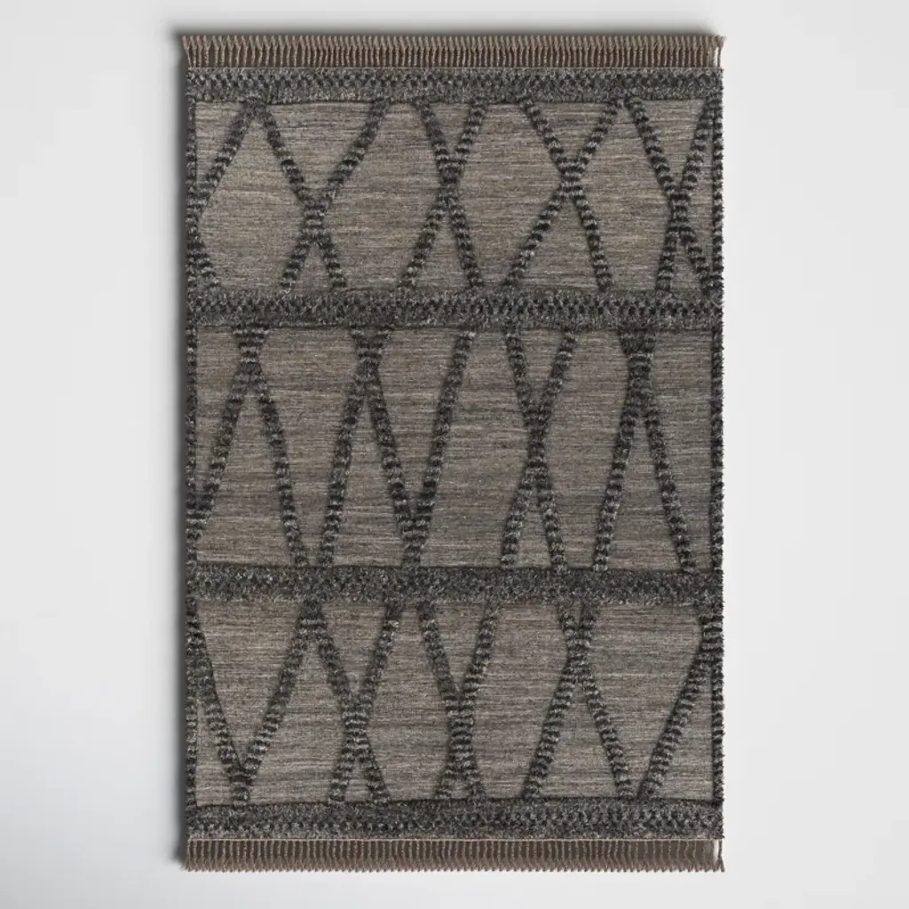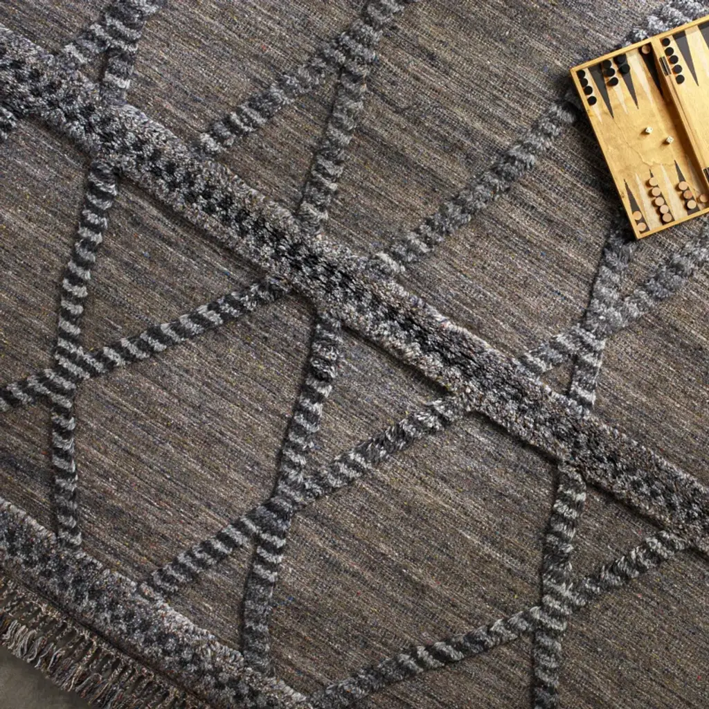 Ready to provide a textured surface underfoot, our hand-knotted indoor rug is a standout addition to any room thanks to its zigzag design and a high-low pile. A bold geometric motif inspired by Moroccan patterns brings depth to your floor, while dynamic fringe and a color palette of black, brown, and green lend an earthy touch to your space. Woven from wool, a high 1.25" pile makes it ideal for low-traffic locations. To keep it from slipping and sliding around, we think adding a rug pad is a smart idea.