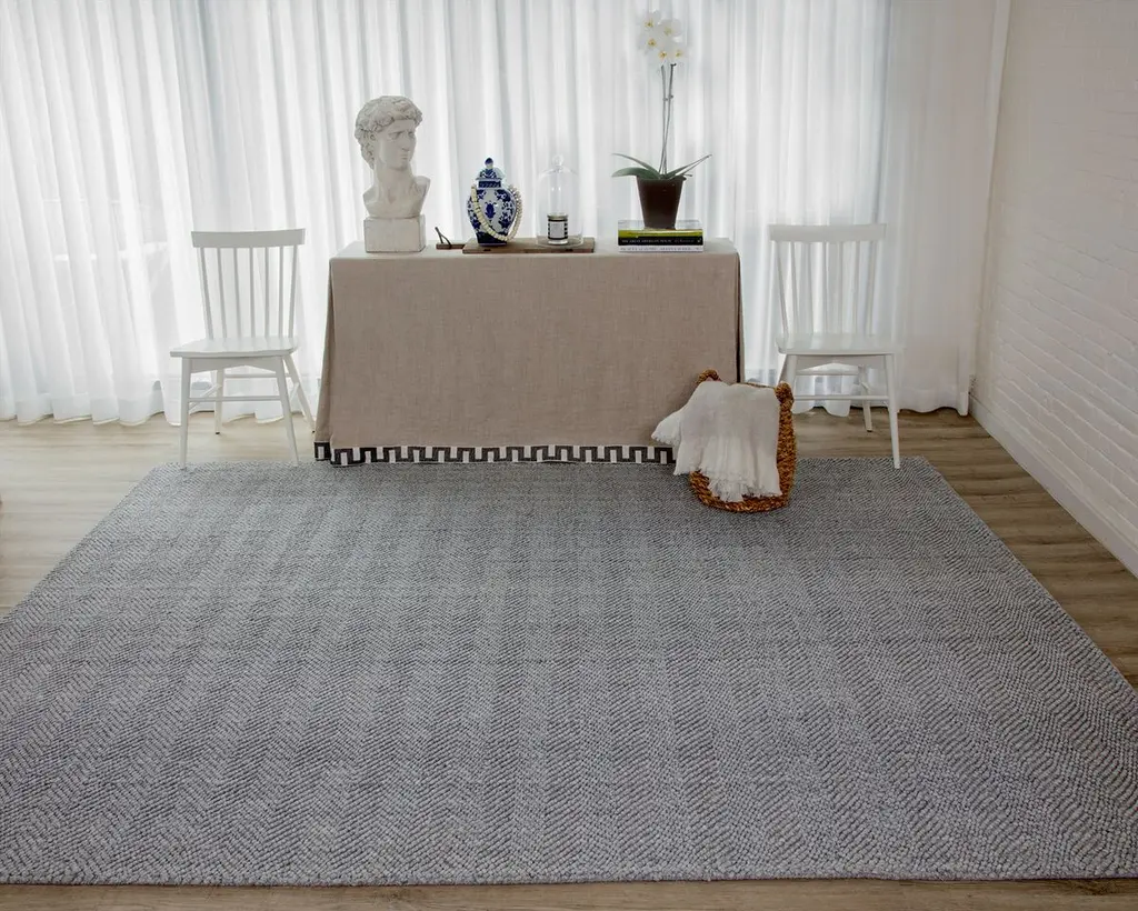 The subtle herringbone pattern and neutral color of this handwoven rug make it a welcome addition to formal and casual spaces alike. Canvas backing adds an extra layer of cushioning and durability. A rug pad is recommended to prevent slipping and further extend the life of the rug.