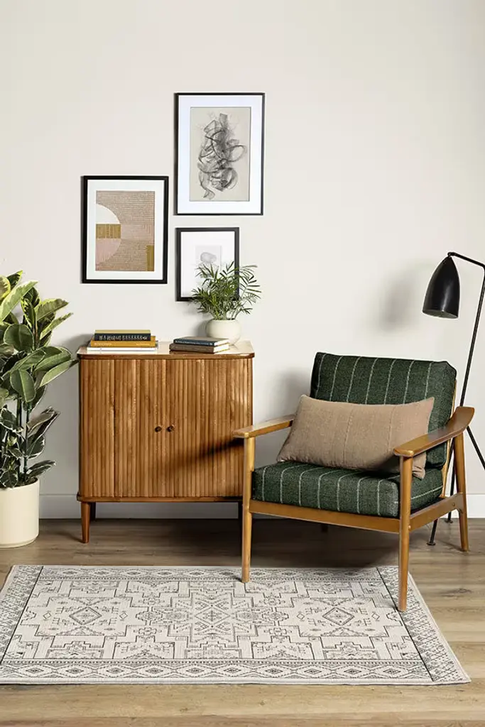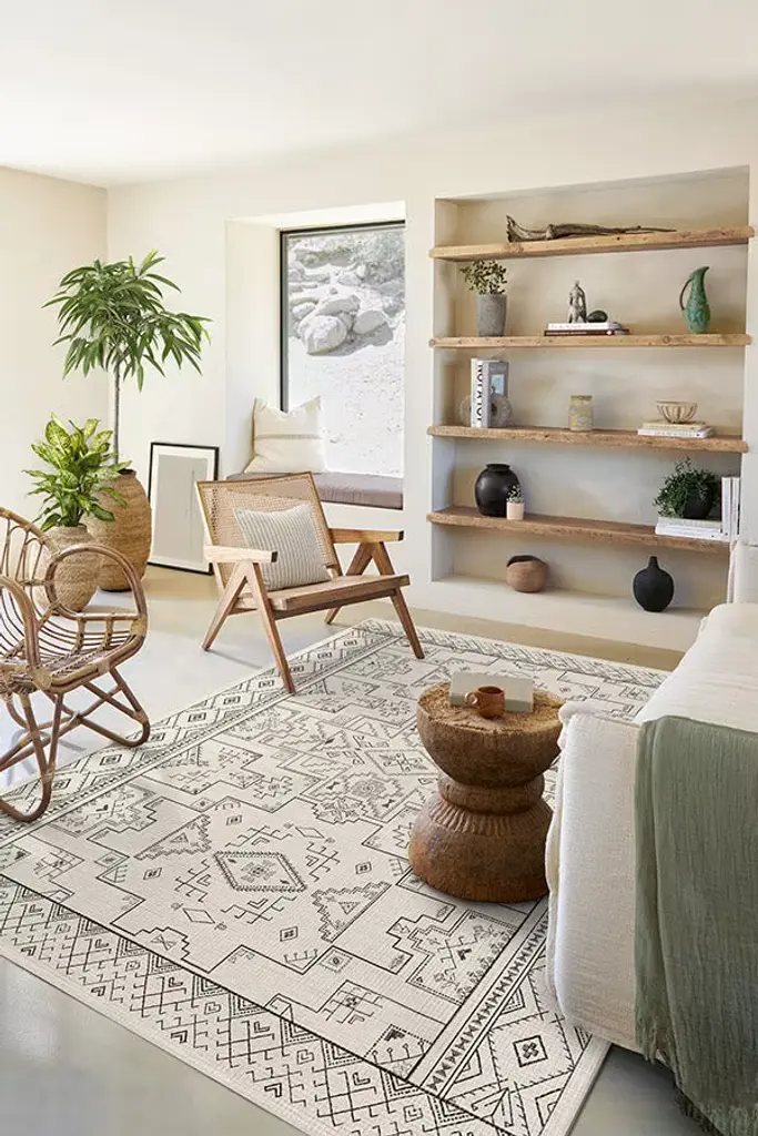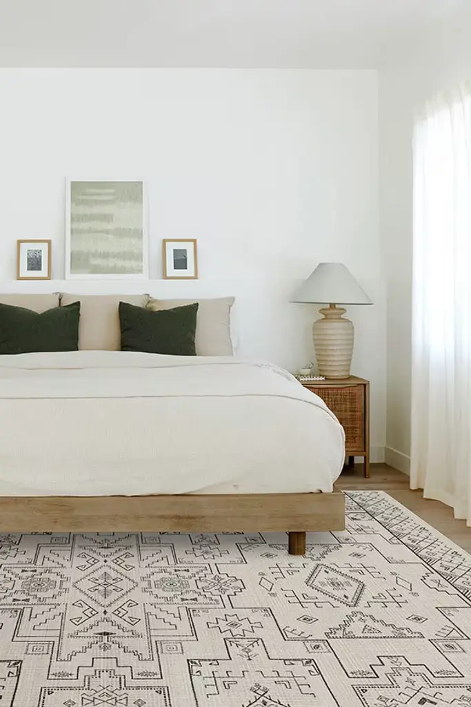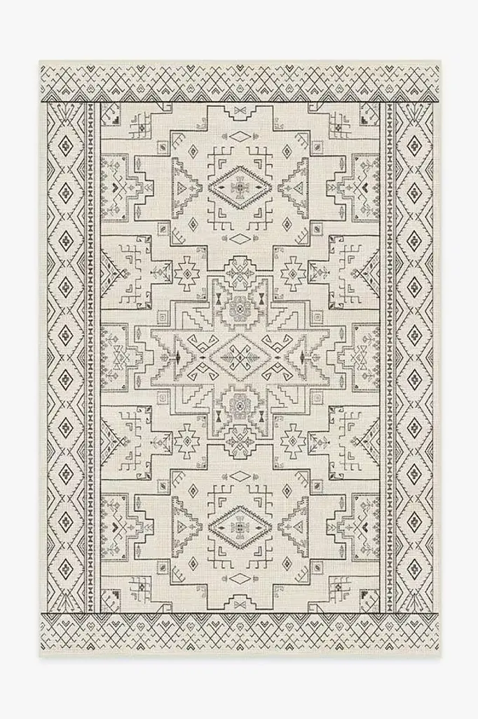 The Leelu Black and White Rug is inspired by the traditional Caucasian rug design. Featuring a highly intricate web of sleek lines and geometric shapes, simplified with a bicolor scheme of neutral grey and pearl, this rug has an understated cool vibe.