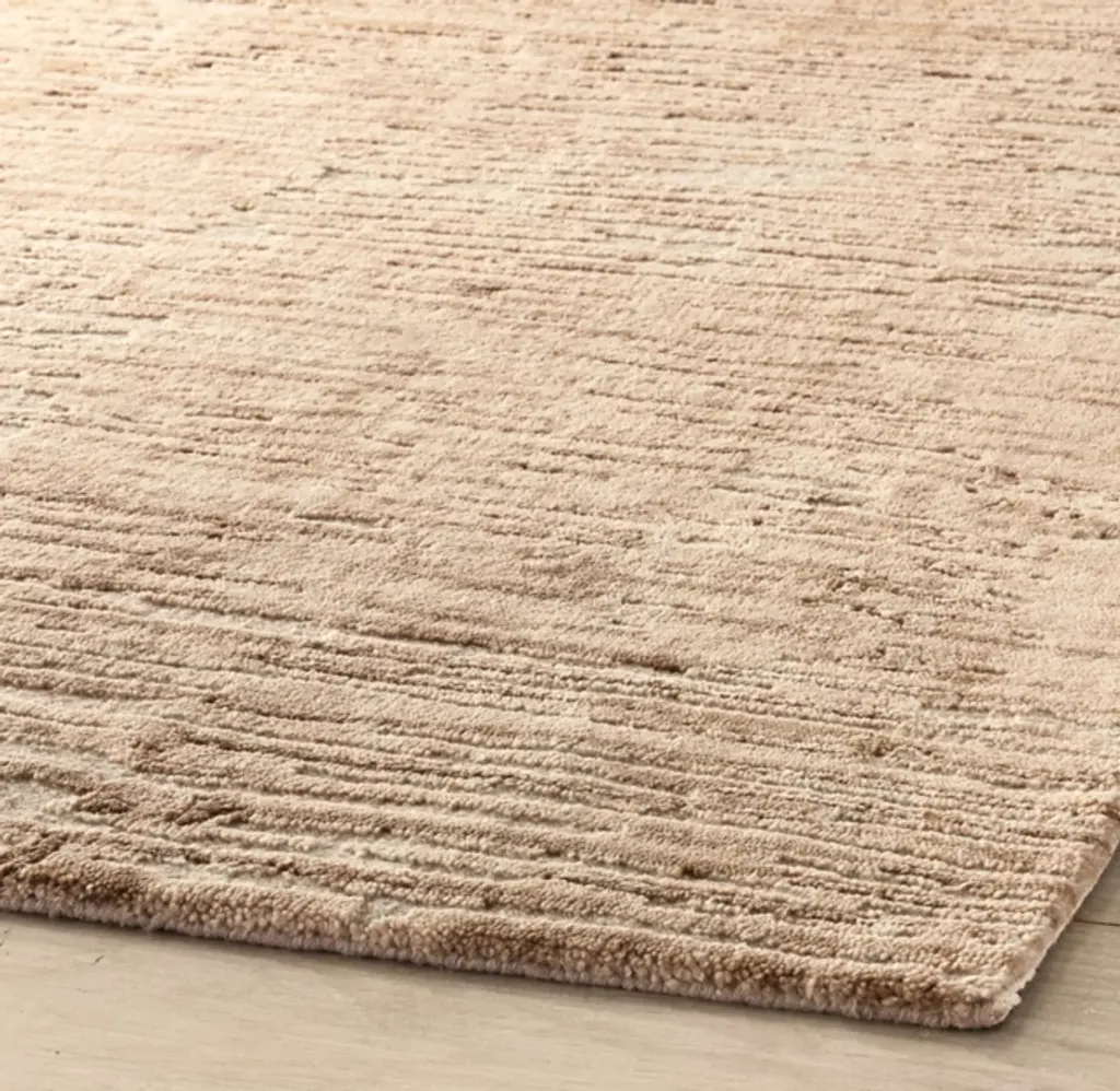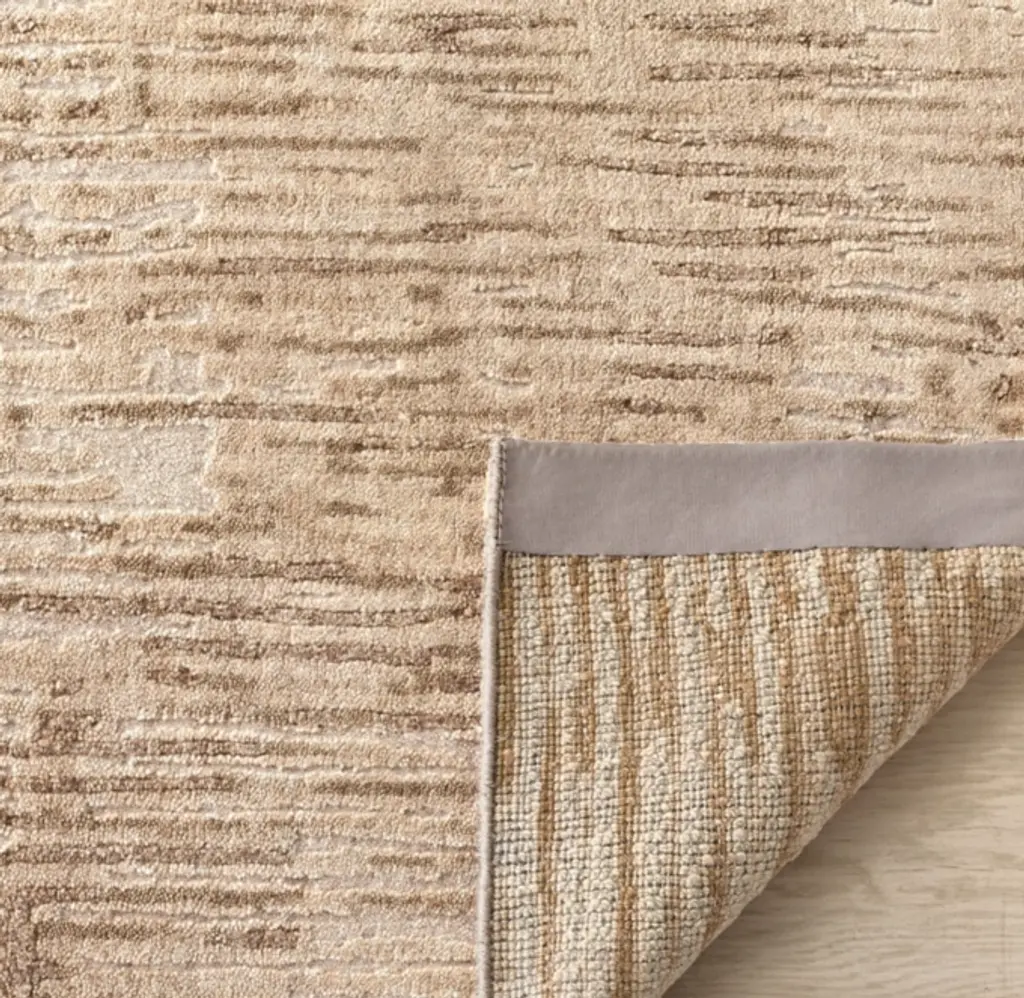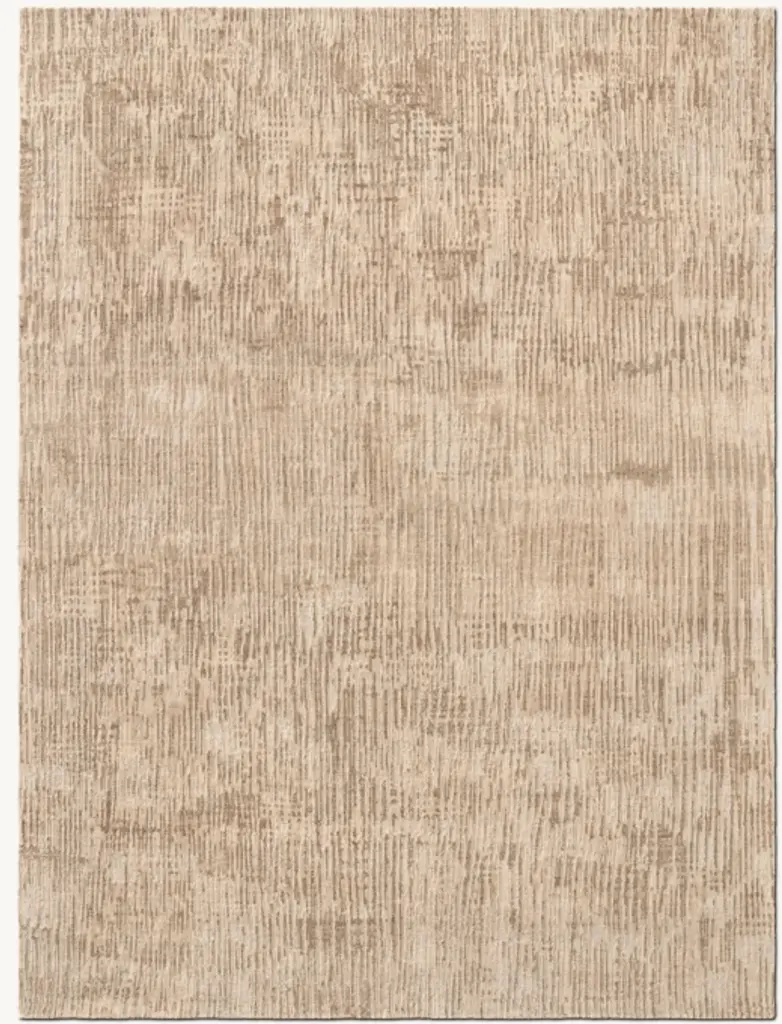 Leila's abstract lines look sketched in ink, but they're an artful alchemy of modern design and artisanal weaving. Rendered in wool and silk fibers that are dyed twice to create a richly shaded palette, the pile is sheared to produce a textured finish.