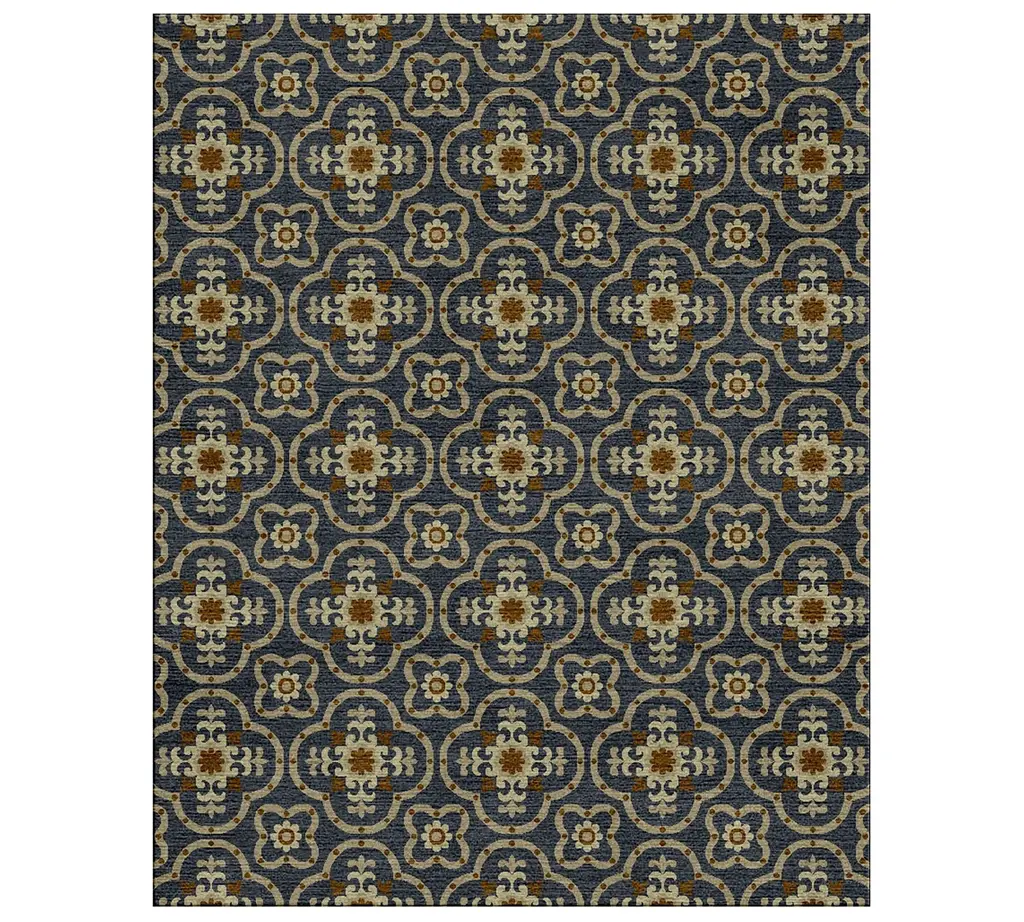 An intricate tile motif makes the Lema Custom Rug a standout foundation in a room. Hand tufted and luster washed, this wool rug is incredibly soft underfoot.