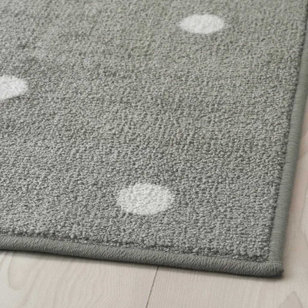LEN Rug - dotted/gray 4 ' 4 "x5 ' 3 ". The pile of the rug dampens sound, creating a snug feeling, and is soft to walk on. The rubber backing keeps the rug in place when the child runs/plays on it. Recommended for all ages.