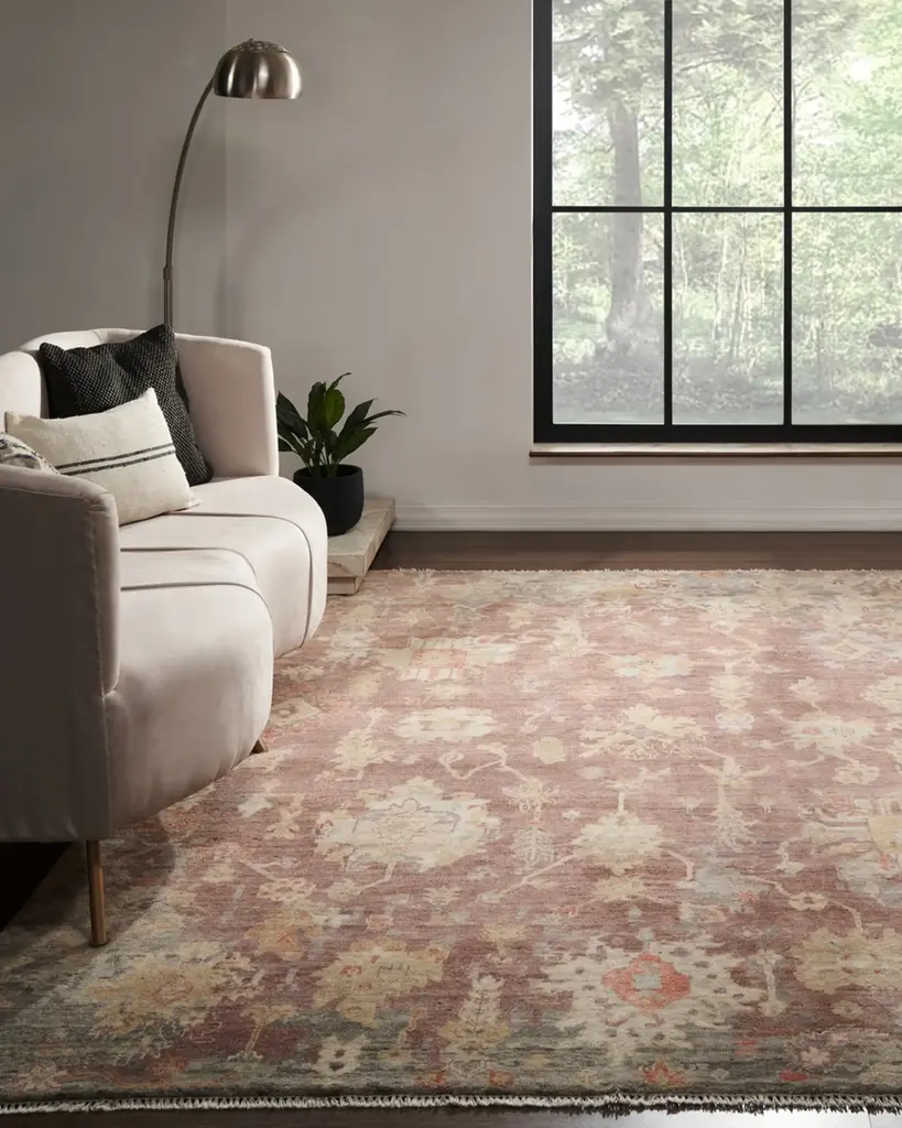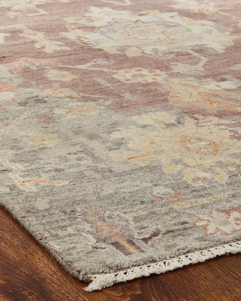 A fashionable modern color palette gives this collection of classic hand-knotted Oushak patterns a stylish update. These exceptional rugs capture the essence and unique character of a timeless, popular style genre. Handcrafted of wool and Silkette® viscose with cotton backing Item Weight (Lbs.): 76.0 Vacuum regularly; professional clean only Size is approximate; we recommend use of a rug pad (not included) Imported Please note: Rugs (especially wool rugs) are prone to a natural shedding process. With regular vacuuming, the shedding will decrease over time. Hand-knotted rugs tend to shed less than hand-tufted rugs, and flatweave rugs will shed less than those with a deeper pile, but all rugs will shed more in high-traffic areas than they do in lower-traffic spaces.Unfortunately, we cannot provide rug swatches at this time. We apologize for the inconvenience. We recommend using a rug pad with every indoor rug to prolong its beauty by minimizing everyday wear and tear and providing a little breathing space to help prevent fiber damage. A pad also helps stabilize the rug, reducing slippage on hard floors. Shipping Direct from Vendor, usually ships within 14 business days. undefined