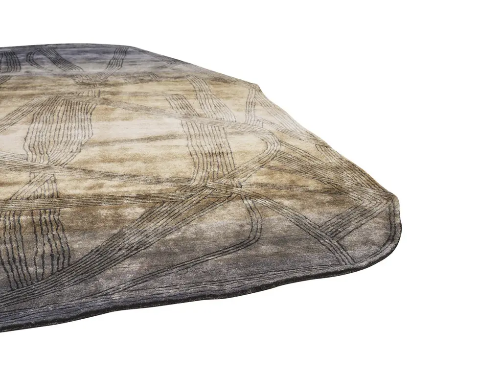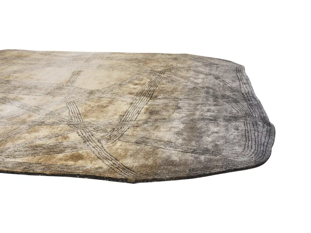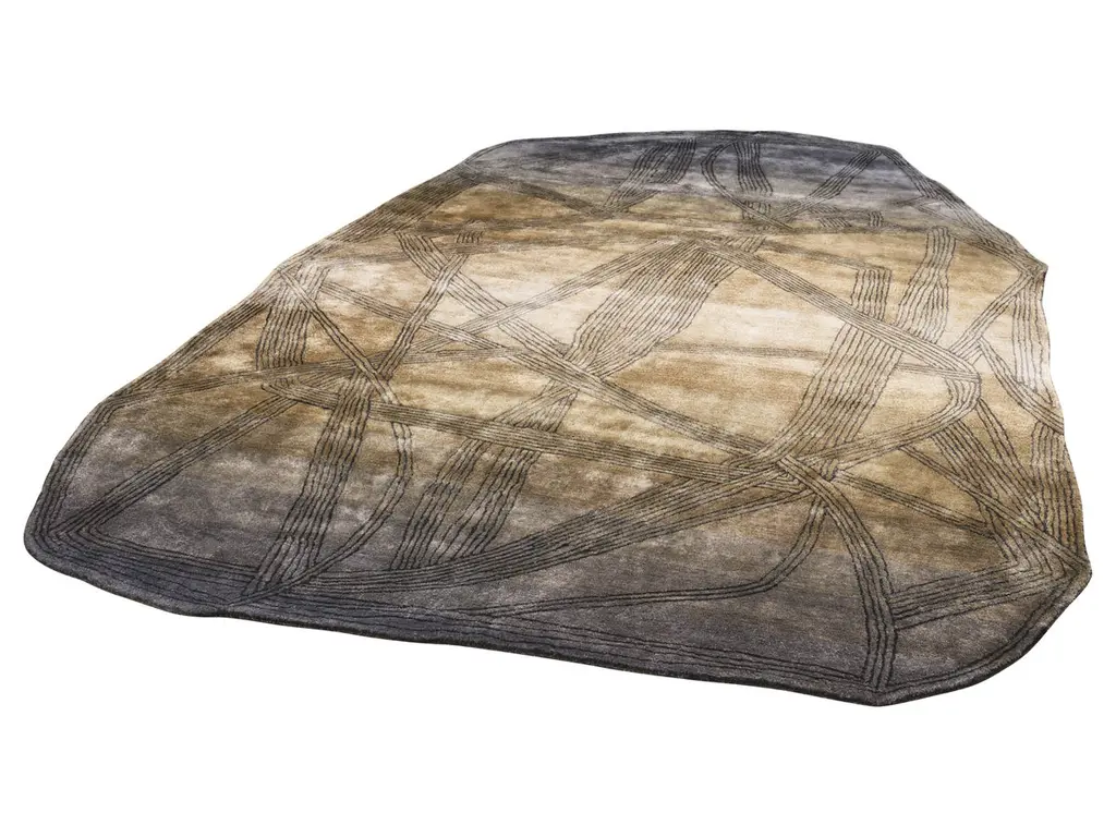 Lennox Hand Tufted Modern Shaped Silk Rug In Ash Gold Colour By Hands