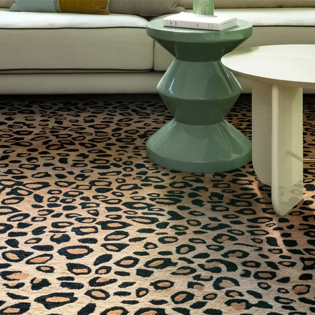Embrace your wild side with the Leo Rug by Géraldine Prieur for Toulemonde Bochart. Hand-tufted from luxurious New Zealand wool, this elegant piece features a subtle leopard print motif that will add a touch of sophistication to any room. Complete the jungle-inspired look with the matching Jungle Forest rug. Highlights
