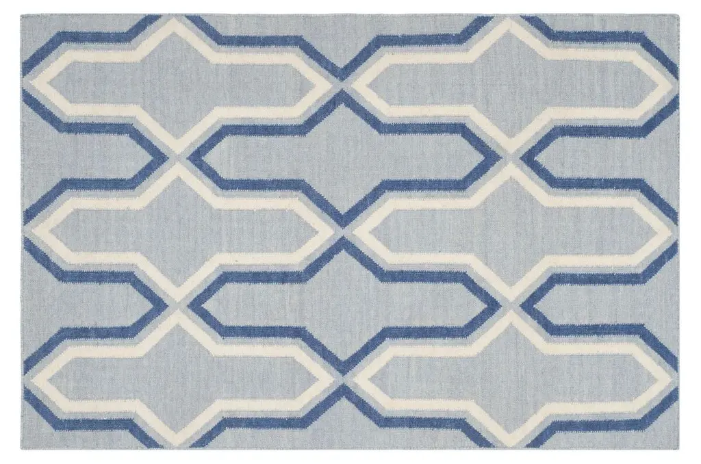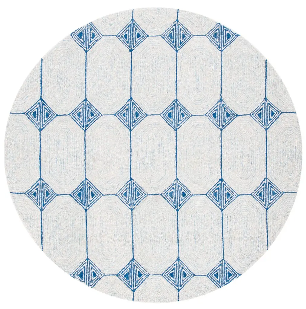 Elevate your space with our hand-tufted Contemporary Ivory/Blue Rug, featuring an elegant geometric diamond motif. Crafted in India, this piece blends 80% wool and 20% cotton for a luxurious feel, with a pile height of 1/4". This 4' x 6' small rectangle rug adds a touch of modern sophistication to any room. Although not washable or slip-resistant, its quality construction offers both comfort and durable style. Perfect for adding a serene yet chic vibe to your home d?cor.