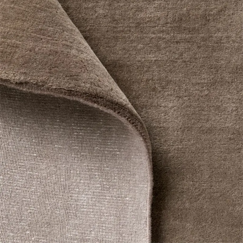 Loomed by hand from semi-worsted wool, sepia brown area rug offers a plush, welcoming feel underfoot. An intensive washing process enhances the wool's natural sheen and softens the texture, allowing the richness of color to come through with depth and subtle variation. The result is a rug that feels luxurious and grounded, with tonal shifts that add quiet movement and dimension to the room. CB2 exclusive.How will it look in your room? 12"x12" rug samples are available in stores for a fee refundable upon return of the sample.