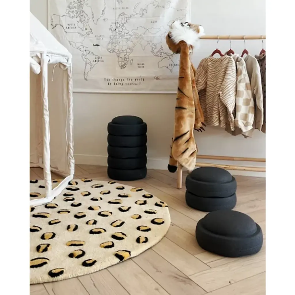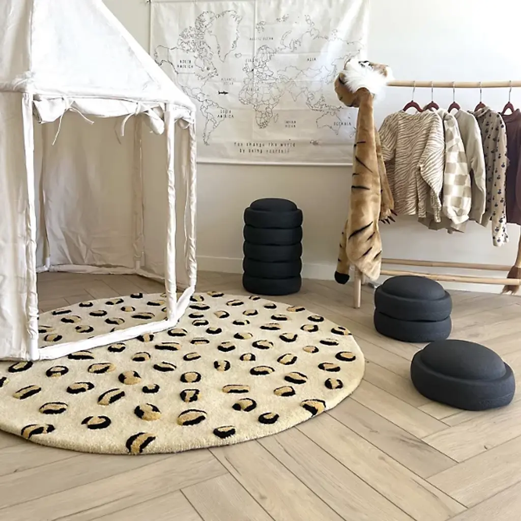 Transform your child’s room into a playful animal kingdom with the Leopard Round Rug from Maison Deux. This super-soft, fair-trade rug features a striking 3D leopard pattern, brought to life through varying pile heights. Hand-tufted and hand-carved from 100% New Zealand wool by skilled artisans in India, it adds a bold and stylish touch to any kid’s space. Certified by GoodWeave, it ensures ethical production while supporting education and improved working conditions in producer communities.