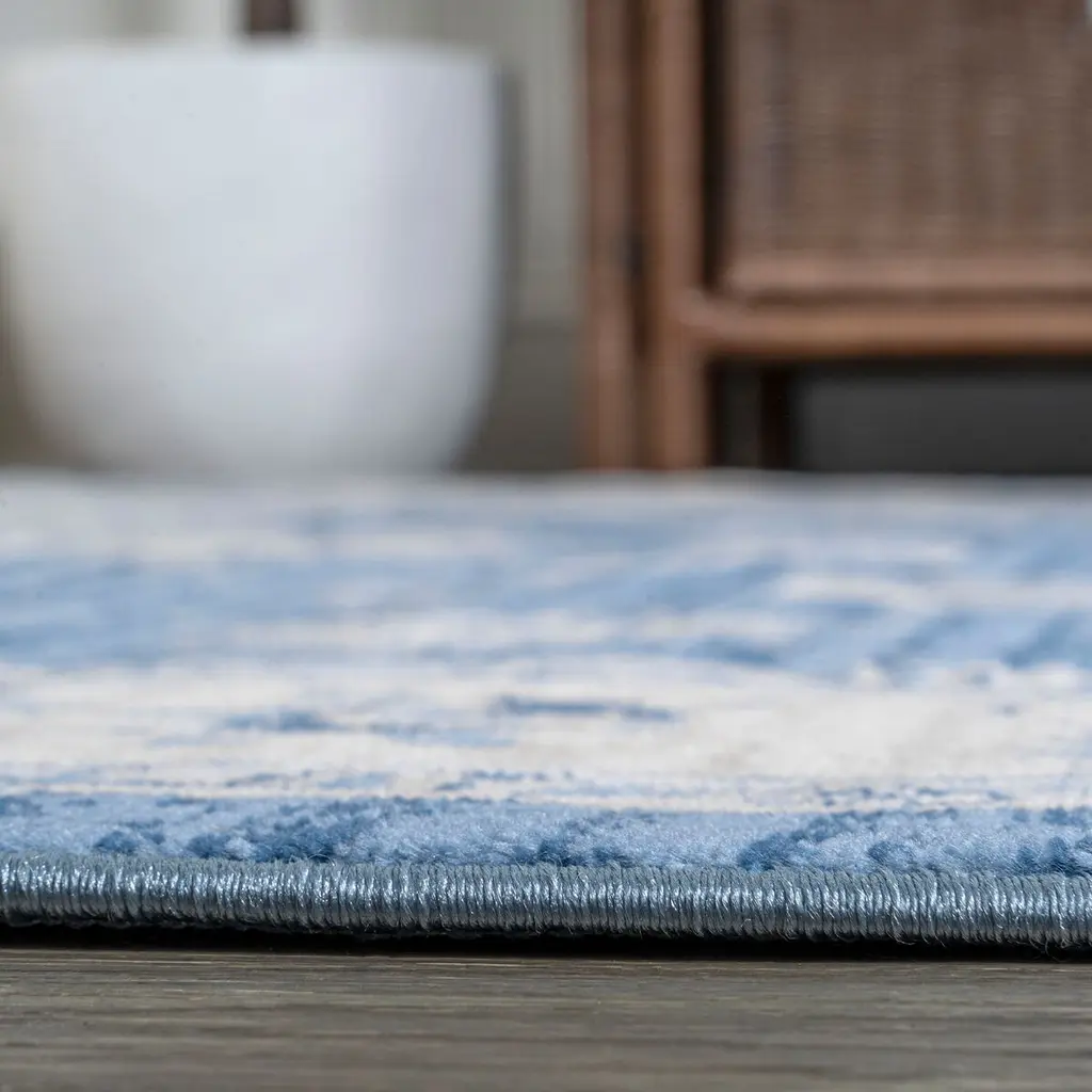 Vintage Oushak floor coverings inspired this polypropylene rug's floral design and intentional abrash—the fading that occurs to fine artisanal rugs over time. The reined-in palette, however, makes the rug a welcome addition to contemporary and traditional spaces alike. A rug pad is recommended to help prevent slipping and extend the life of the rug.