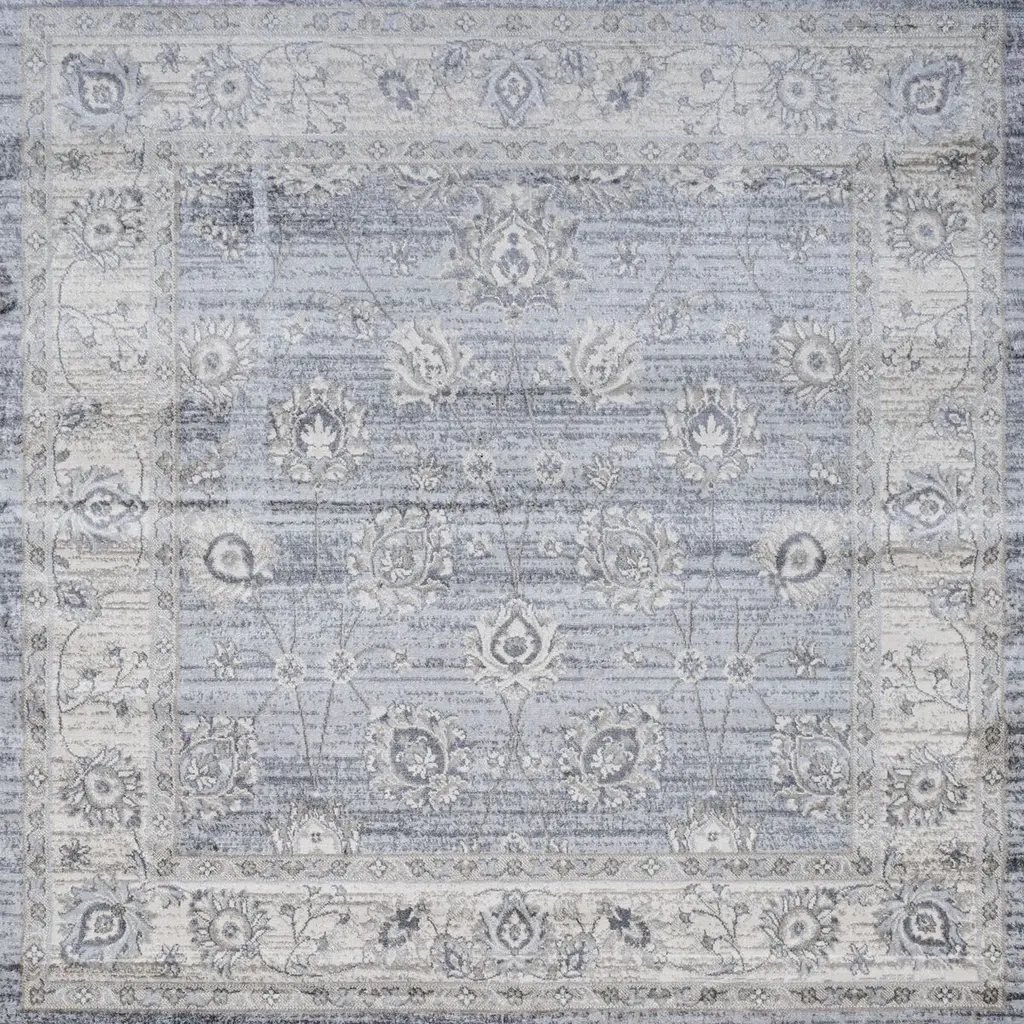 Vintage Oushak floor coverings inspired this polypropylene rug's floral design and intentional abrash—the fading that occurs to fine artisanal rugs over time. The reined-in palette, however, makes the rug a welcome addition to contemporary and traditional spaces alike. A rug pad is recommended to help prevent slipping and extend the life of the rug.