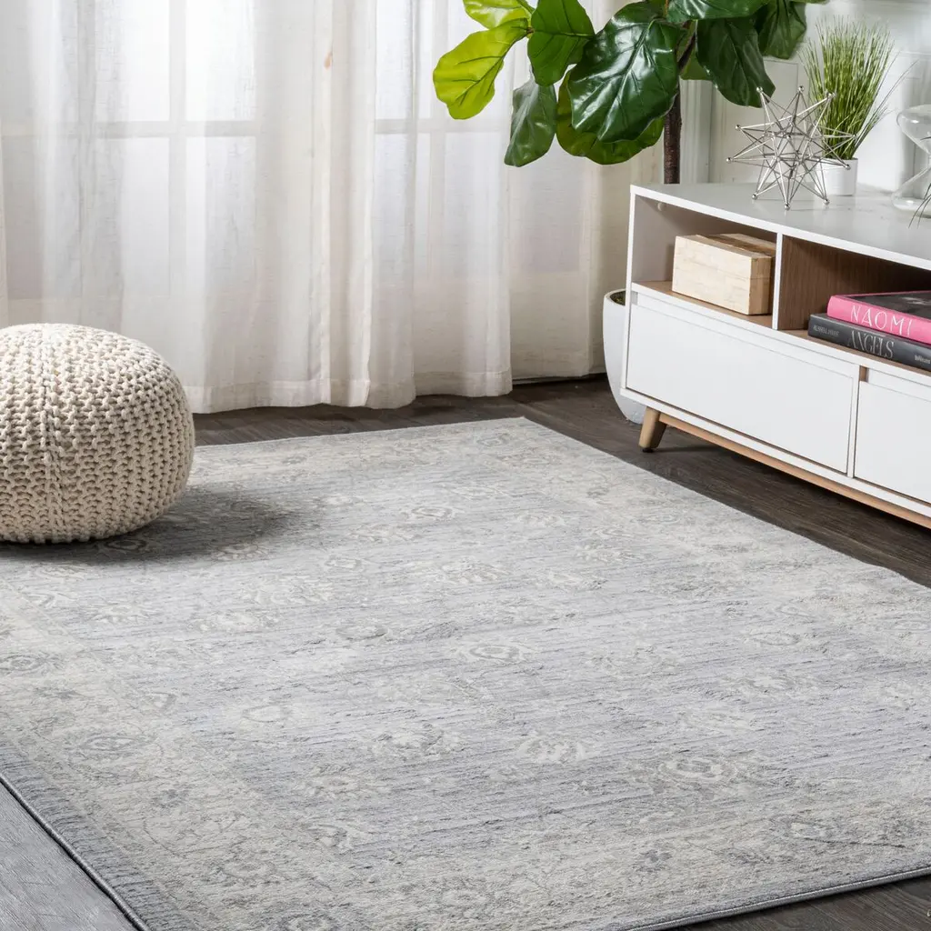 Vintage Oushak floor coverings inspired this polypropylene rug's floral design and intentional abrash—the fading that occurs to fine artisanal rugs over time. The reined-in palette, however, makes the rug a welcome addition to contemporary and traditional spaces alike. A rug pad is recommended to help prevent slipping and extend the life of the rug.