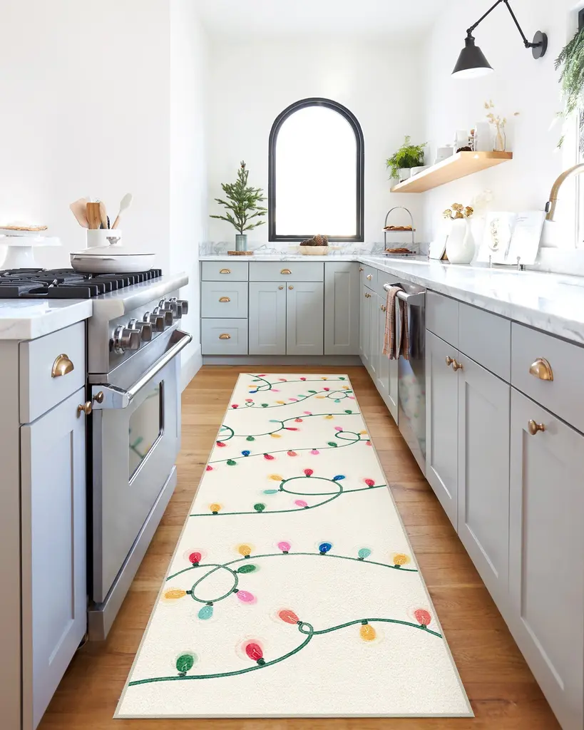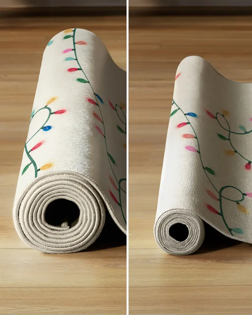 Bring cheerful whimsy to all who enter with the Let It Glow Cream Multicolor Rug. Strung with colorful holiday string lights, you’ll lay the groundwork for a very merry holiday with bold, energetic colors set against a warm, creamy background. Water-resistant, stain-resistant, and fully machine-washable. Colors may vary by device and lighting.