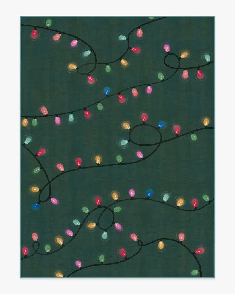 Twinkle season starts from the ground up. The Let It Glow Green Rug brings holiday charm to any room with its whimsical string of glowing lights. Bright touches of red, yellow, green, and soft hues of blue and pink create a festive, feel-good look that shines without stealing the show. No stringing necessary. Water-resistant, stain-resistant, and machine-washable. Colors may vary by device and lighting.