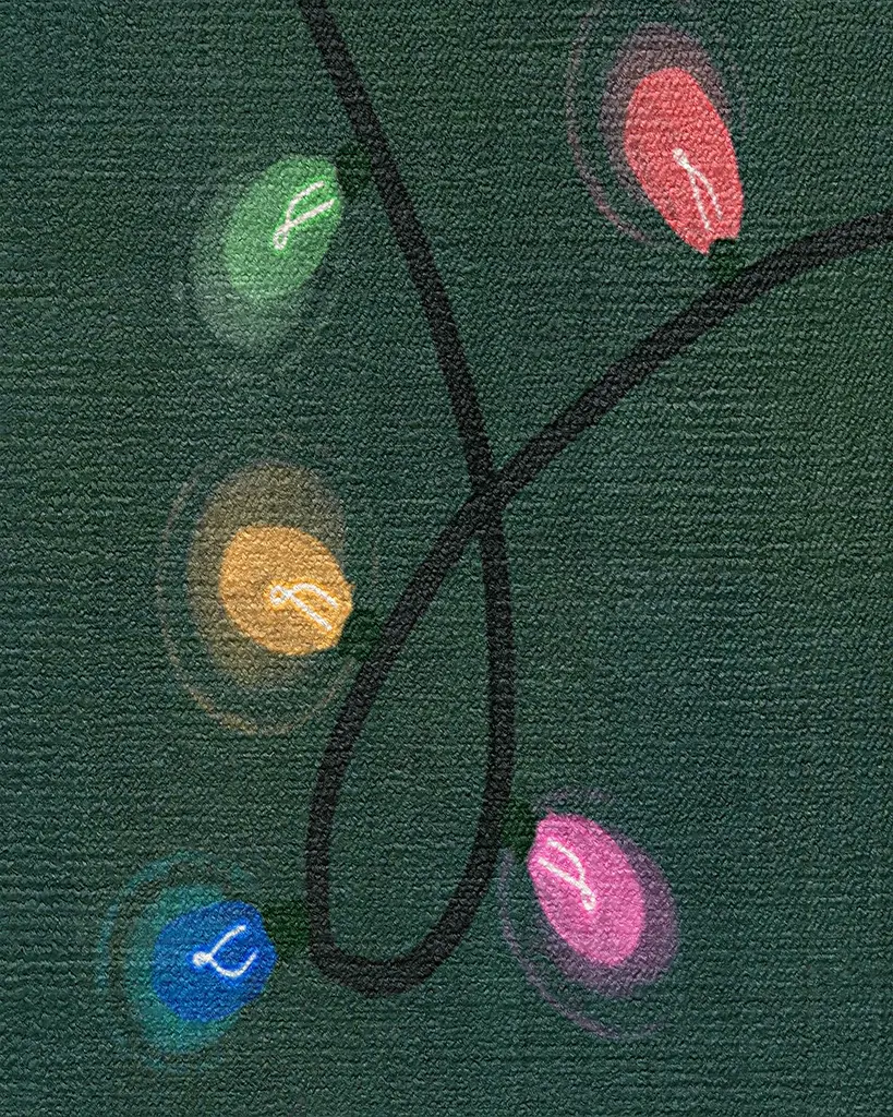 Twinkle season starts from the ground up. The Let It Glow Green Rug brings holiday charm to any room with its whimsical string of glowing lights. Bright touches of red, yellow, green, and soft hues of blue and pink create a festive, feel-good look that shines without stealing the show. No stringing necessary. Water-resistant, stain-resistant, and machine-washable. Colors may vary by device and lighting.