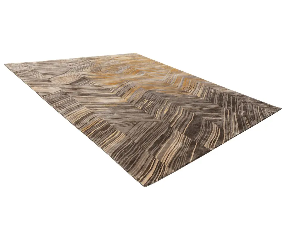 Leucos Hand Knotted Contemporary Silk Rug In Gold And Old Rose Colours By Hands