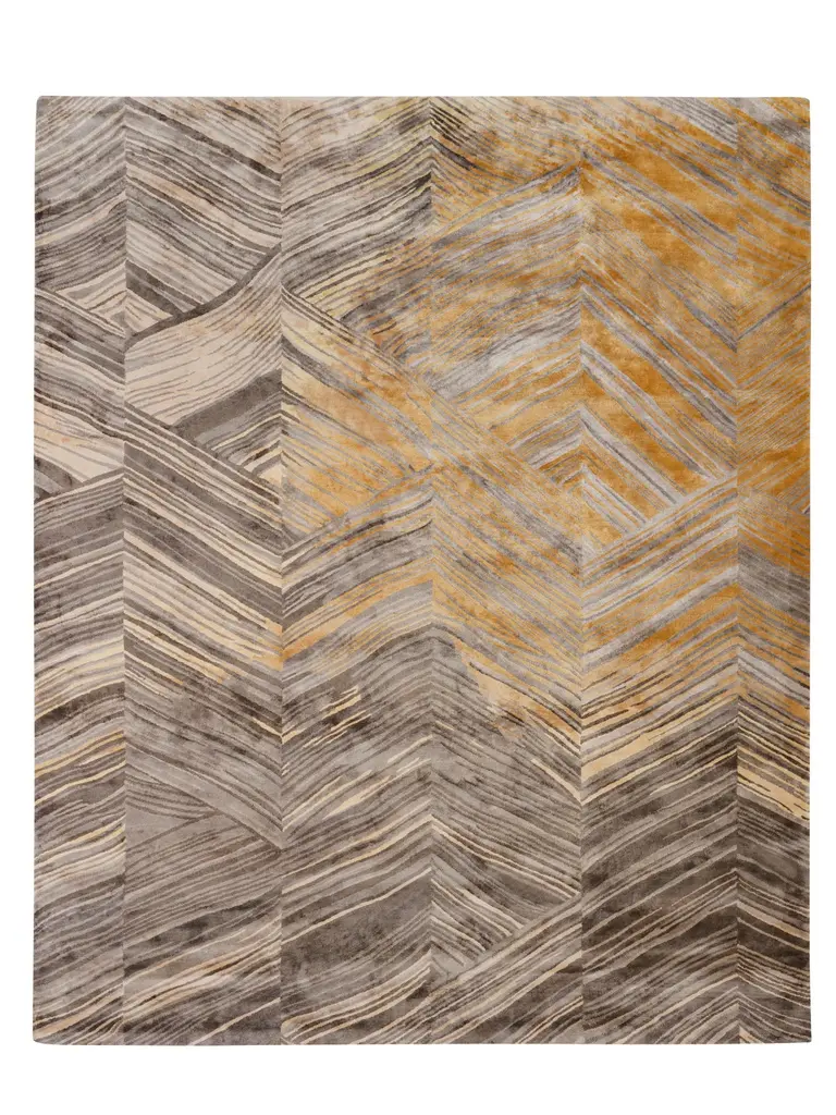 From brutalist concrete cubes to sky-scraping structures in steel, the world of urban architecture is an ever-continuous documentary of the human spirit. Encompassing its many dimensions – fortitude, ambition, adaptability, and harmony, to name a few. Through shape, form, pattern, structure, and scale – many a hidden gem, a hidden story, in plain sight – which forms the base of the Urbane II collection. Beyond expressions of geometric abstraction, Urbane II presents emotive works of art for contemporary living.The Vessel, a uniquely symmetrical structure is a place where people come together in the scattered times of urbanization. The carpet reflects the same geometrical symmetry as this architectural framework and the design is similar to that of a bridge connecting people. Available in Colors Gold and Old Rose in different sizes 170 x 245 cm - $3,391180 x 275 cm - $4,161245 x 305 cm - $6,164275 x 365 cm - $8,322.