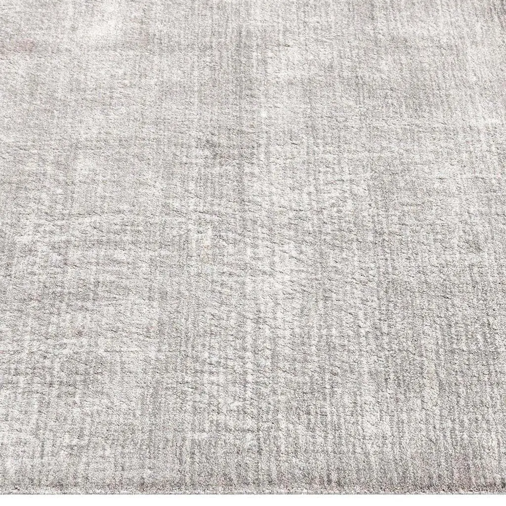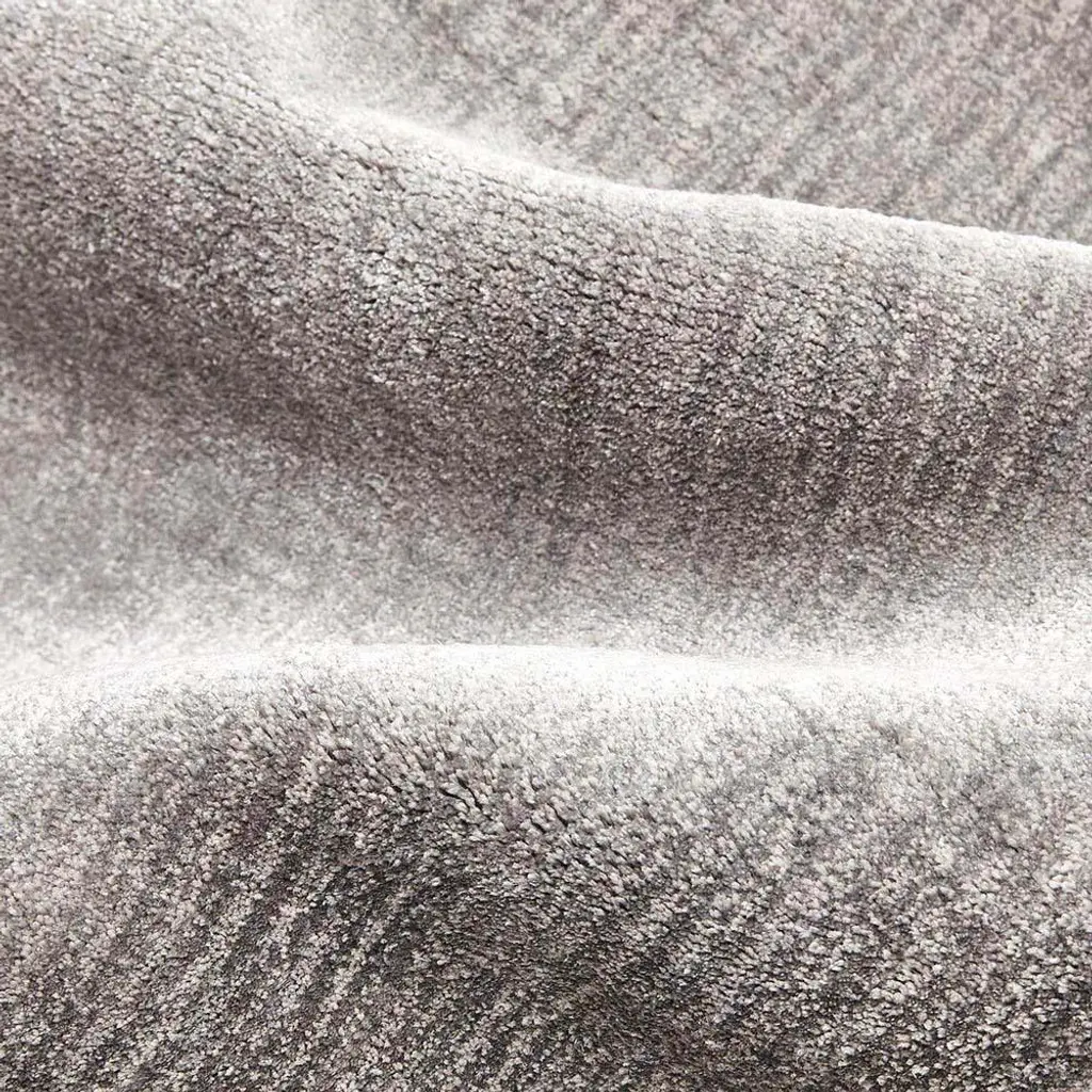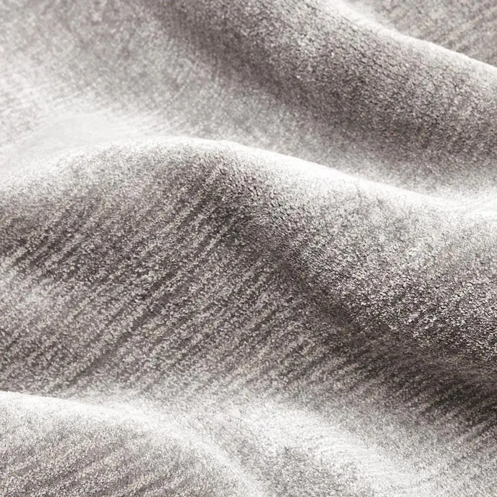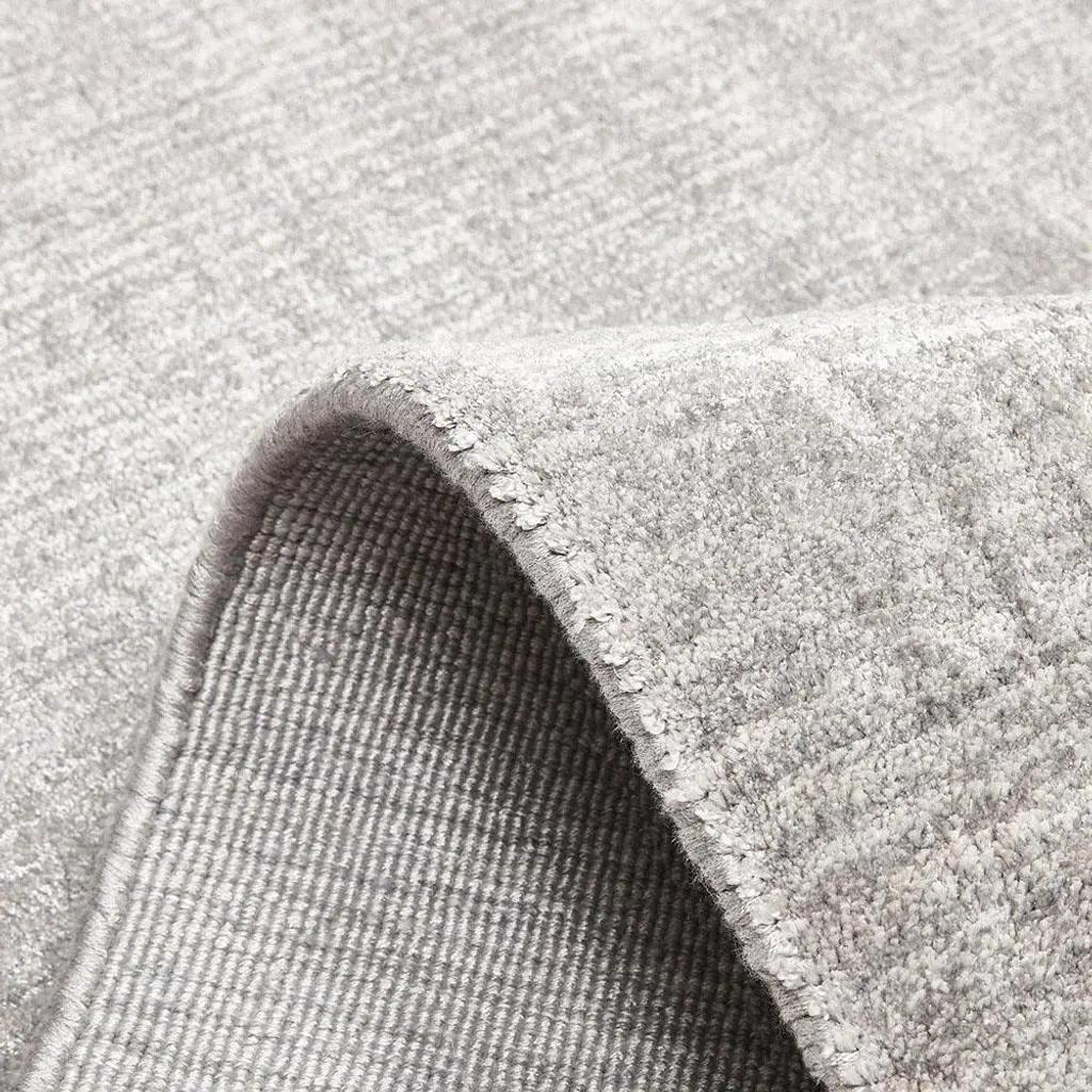 The 3'x5' Levian rug makes an effortless complement to any modern living space. Hand-loomed from a soft blend of linen, viscose, and cotton yarns, tone-on-tone stripes lend subtle depth and dimension to this solid grey rug.