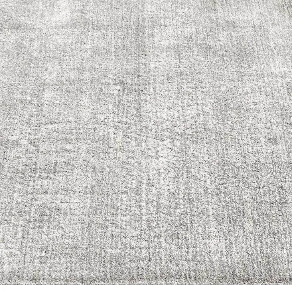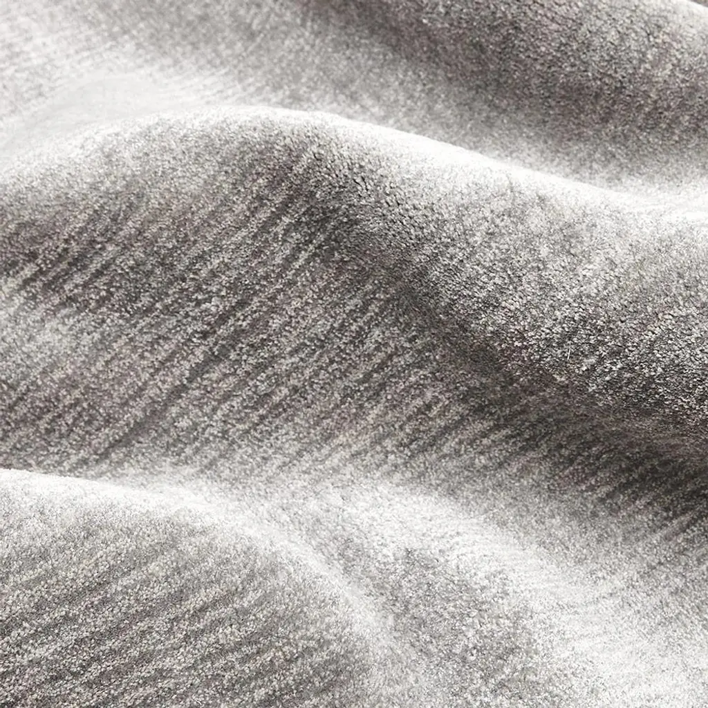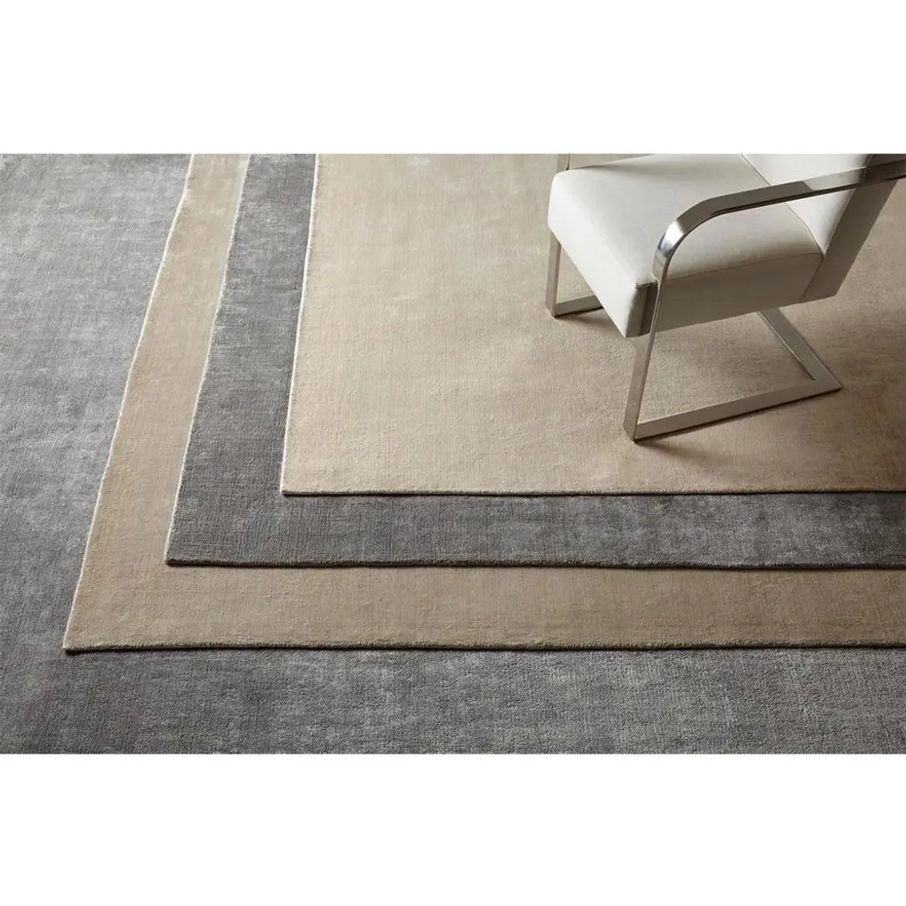 The 9'x12' Levian rug makes an effortless complement to any modern living space. Hand-loomed from a soft blend of linen, viscose, and cotton yarns, tone-on-tone stripes lend subtle depth and dimension to this solid grey rug.