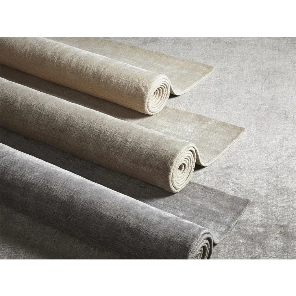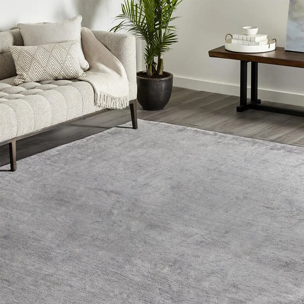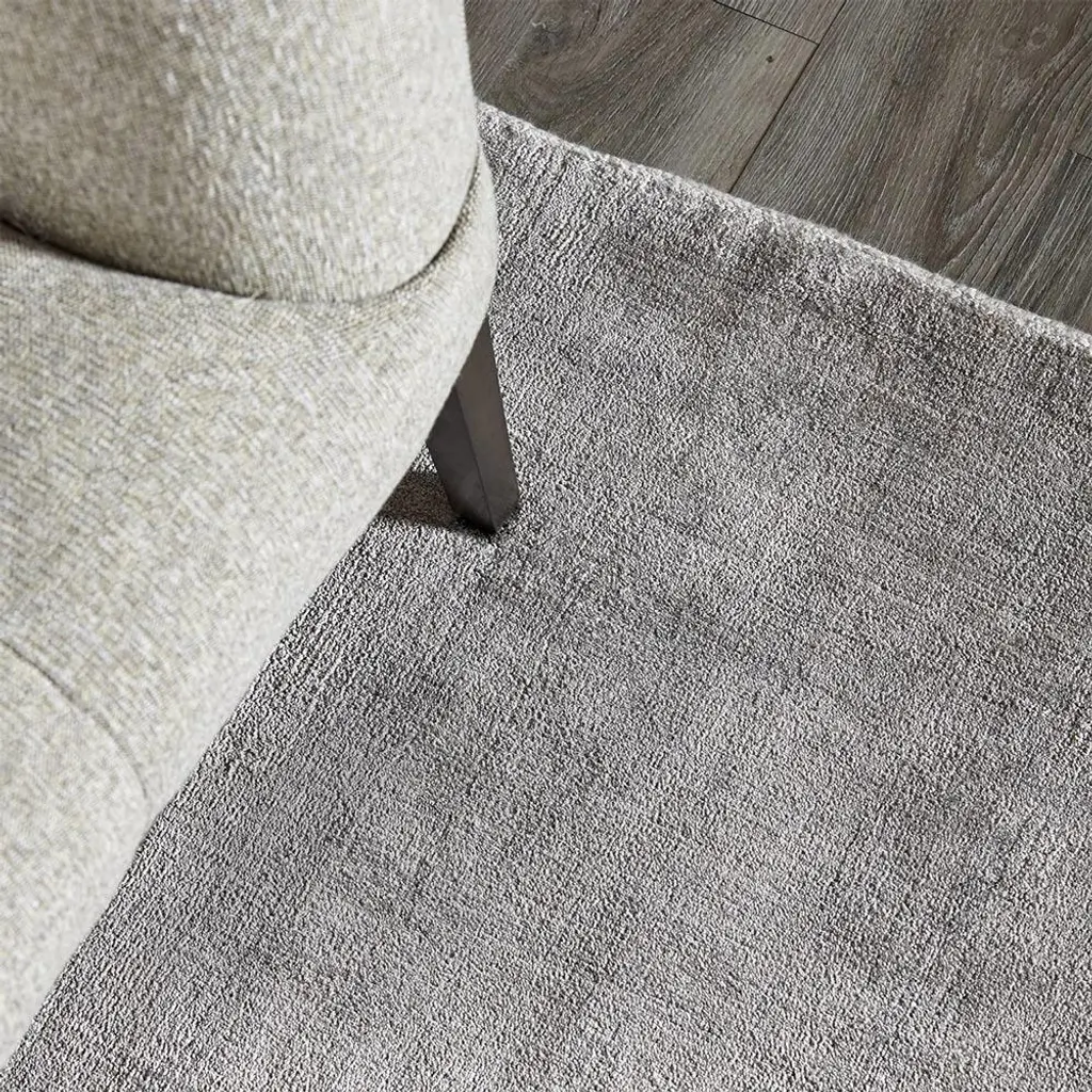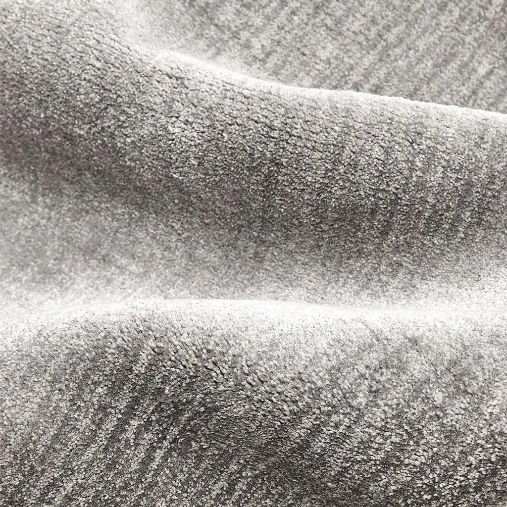 The 9'x12' Levian rug makes an effortless complement to any modern living space. Hand-loomed from a soft blend of linen, viscose, and cotton yarns, tone-on-tone stripes lend subtle depth and dimension to this solid grey rug.