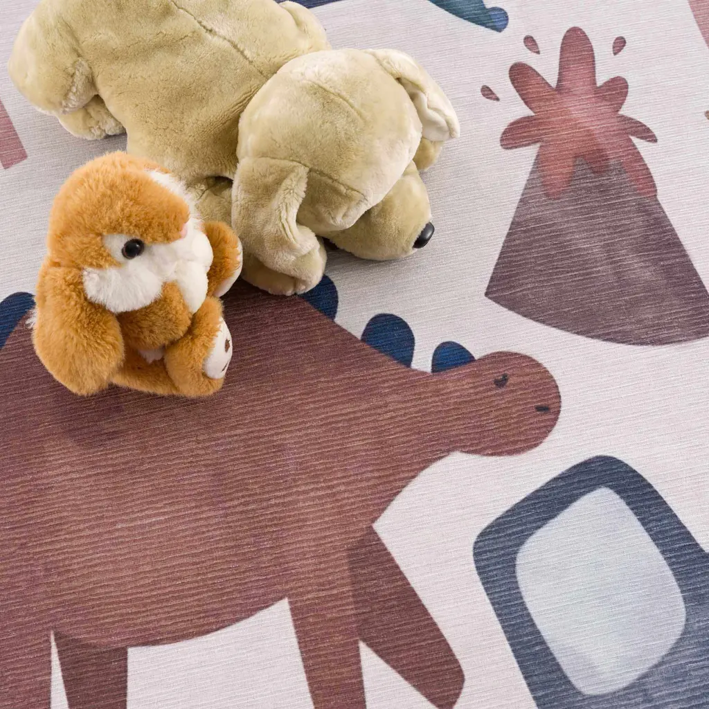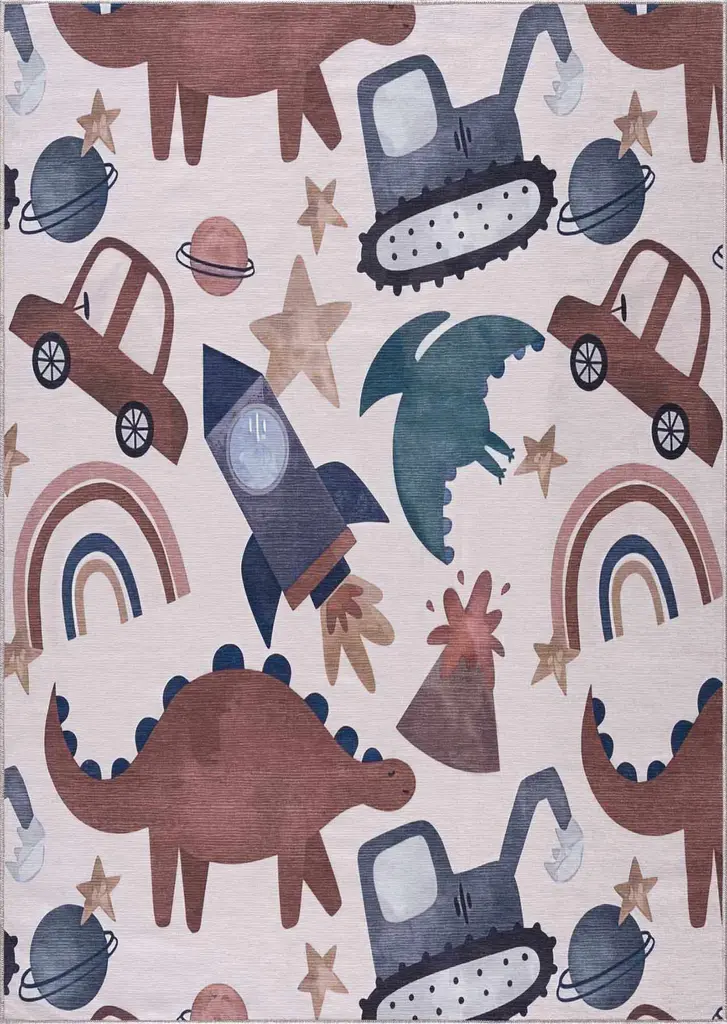 Libra Washable Kids Rug - Dinosaur Rocket Car Rainbow - 5'3" X 7'3" Rectangle