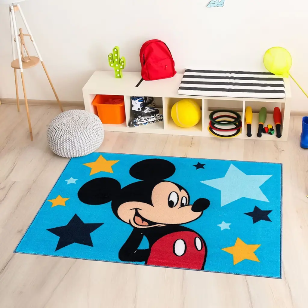Add a touch of Disney magic to your child's space with this delightful Mickey Mouse Youth Area Rug! Featuring the one and only Mickey Mouse against a vibrant blue background sprinkled with colorful stars, this rug is the perfect addition to any playroom, bedroom, or nursery. Made from soft plush polyester, this 3'6" x 4'6" rug offers a cozy and comfortable surface for playtime, storytelling, or relaxing after a long day of adventures. Digitally printed with bold, fade-resistant colors, Mickey's cheerful expression and classic red shorts pop with timeless charm. Designed with a non-slip backing, this rug stays securely in place, providing safety for little ones as they explore and imagine alongside their favorite Disney pal. The durable construction ensures long-lasting quality, making it a practical yet playful addition to any child's room. Perfect for Mickey Mouse fans of all ages, this rug brings the fun and nostalgia of Disney into everyday life. Whether paired with other Mickey-themed decor or as a standout piece, it's sure to inspire smiles and creativity. Let the magic of Mickey Mouse brighten up your little one's space today!