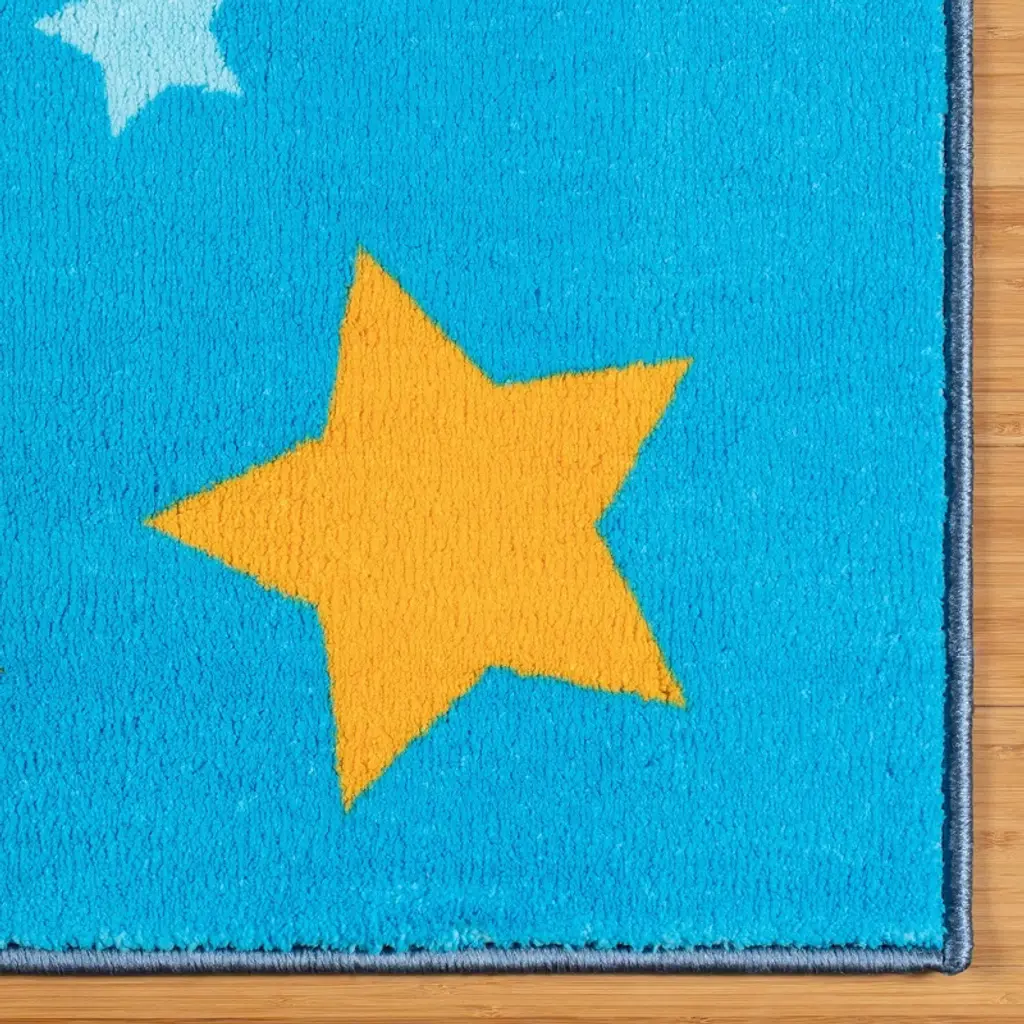 Licensed Disney Mickey Mouse Stars Blue Black Yellow Soft Polyester Digital Printed Easy Care Non-slip Kids Area Rug, 3X5