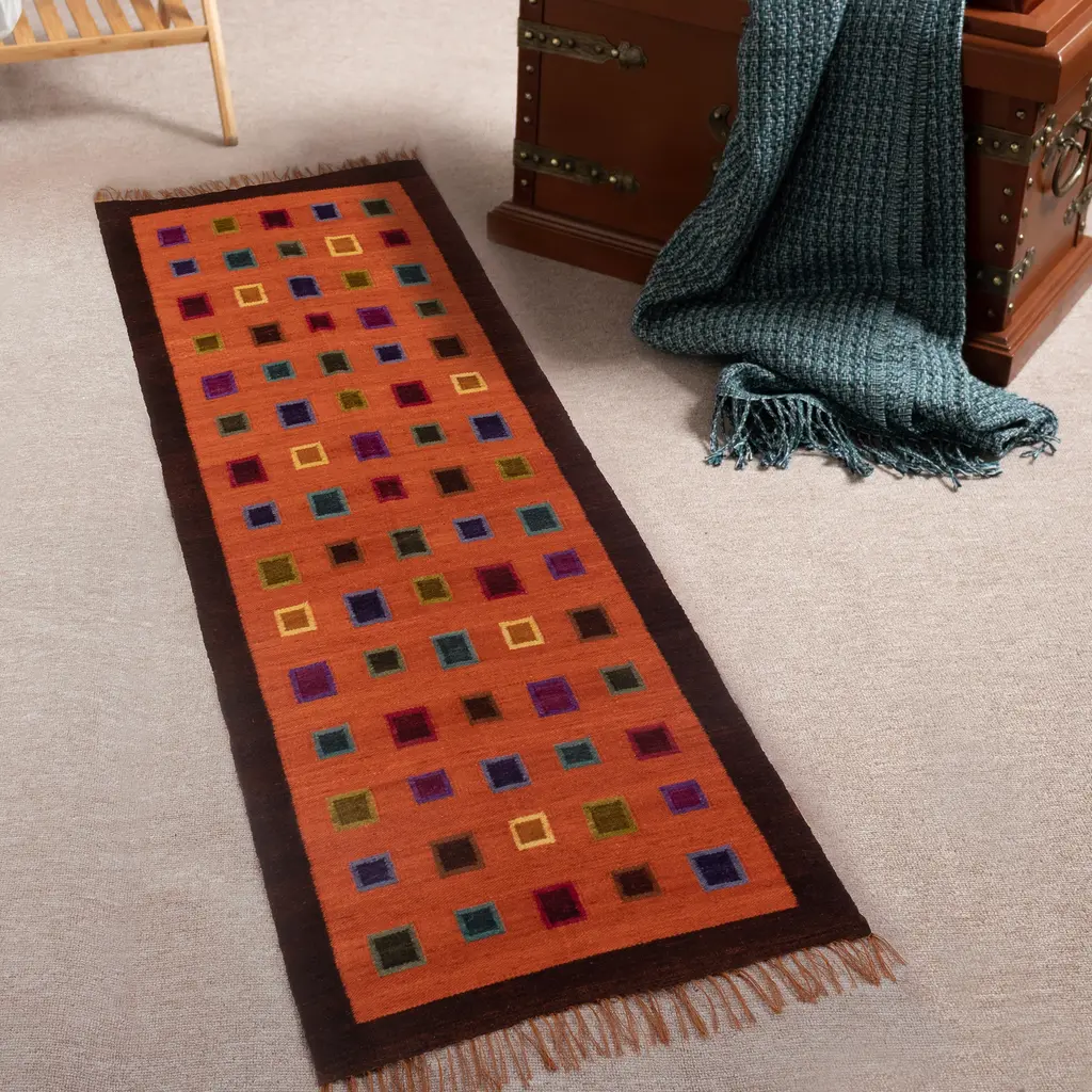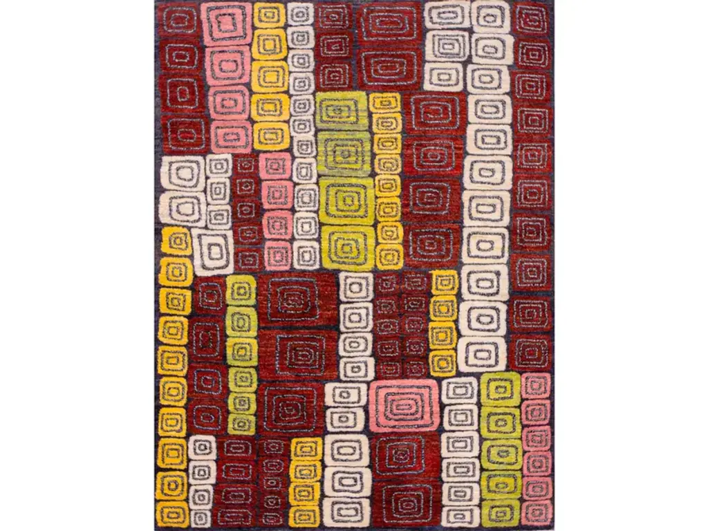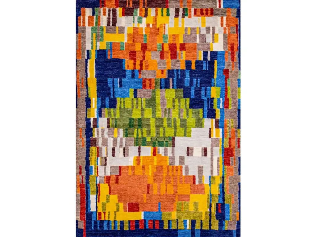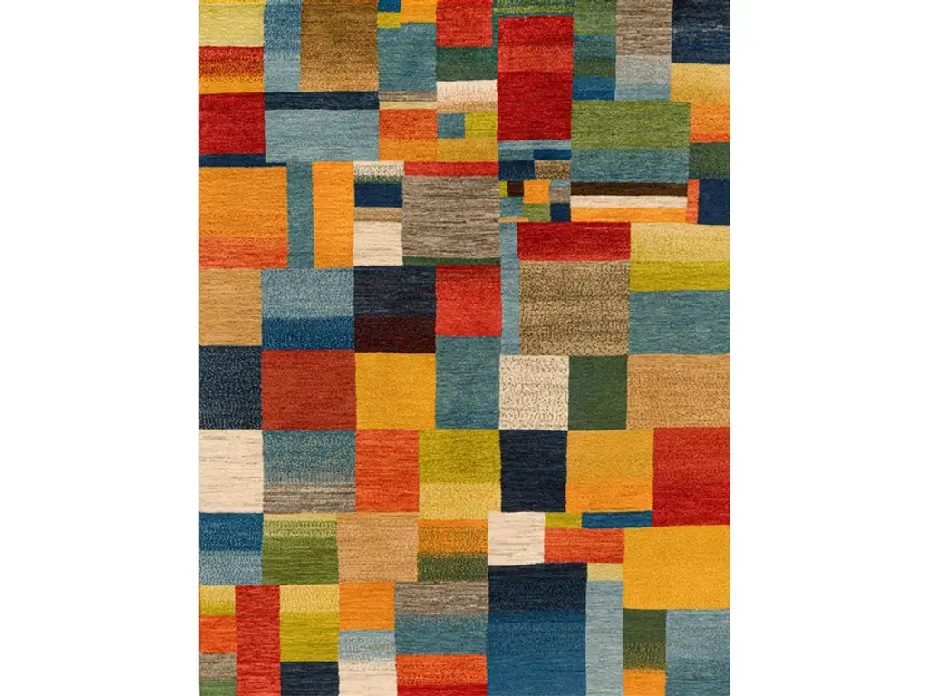 'Licorice All Sorts' Gabbeh 1 is a rectangular wool rug.The geometric designs of our Squares Revisited Collection are quintessentially Gabbeh. The execution of this design explores how different perspectives can be created in weave. Using Persian weaving knowhow and finding inspiration in Symbolist paintings, this design explores the endless possibilities of creating perspectives in weave. This playful and colourful interpretation of a highly traditional design is a modernist delight suitable for any style of interior where vibrancy and pizzazz are keywords.A Gabbeh is a hand-woven pile rug characterized by an abstract design that relies upon open fields of colour and playful geometry. Gabbehs are woven by tribal women and are principally used as ‘bedding blankets’ by the nomadic tribes of the Zagros Mountains of Iran, including Kurdish, Luri and Ghashgha’i people. Gabbehs are quintessentially Zollanvari and geometric designs are quintessential Gabbeh designs. Our Gabbehs come in different qualities. Our finest Gabbeh weave is Zollanvari Super Fine quality (referred to as Kashkuli after one of the Ghashgha’i tribes living in Fars province, southeast and northwest of Shiraz). Our Zollanvari Fine qualities (known as Amaleh after another Ghashgha’i tribe who produced high-quality artefacts for the Khans) are more coarsely knotted, but truly unique and individual in patterns and colour combinations.