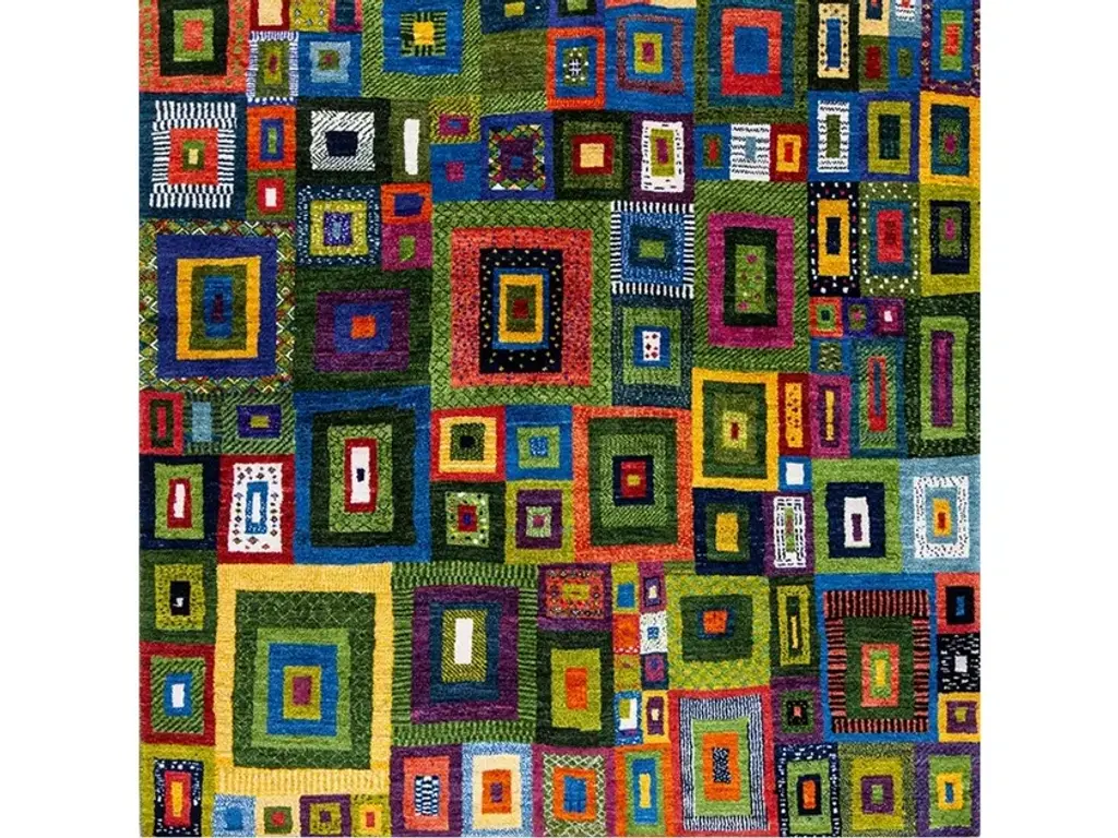 'Licorice All Sorts' Gabbeh 5 is a rectangular wool rug.The geometric designs of our Squares Revisited Collection are quintessentially Gabbeh. The execution of this design explores how different perspectives can be created in weave. Using Persian weaving knowhow and finding inspiration in Symbolist paintings, this design explores the endless possibilities of creating perspectives in weave. This playful and colourful interpretation of a highly traditional design is a modernist delight suitable for any style of interior where vibrancy and pizzazz are keywords.A Gabbeh is a hand-woven pile rug characterized by an abstract design that relies upon open fields of colour and playful geometry. Gabbehs are woven by tribal women and are principally used as ‘bedding blankets’ by the nomadic tribes of the Zagros Mountains of Iran, including Kurdish, Luri and Ghashgha’i people. Gabbehs are quintessentially Zollanvari and geometric designs are quintessential Gabbeh designs. Our Gabbehs come in different qualities. Our finest Gabbeh weave is Zollanvari Super Fine quality (referred to as Kashkuli after one of the Ghashgha’i tribes living in Fars province, southeast and northwest of Shiraz). Our Zollanvari Fine qualities (known as Amaleh after another Ghashgha’i tribe who produced high-quality artefacts for the Khans) are more coarsely knotted, but truly unique and individual in patterns and colour combinations.