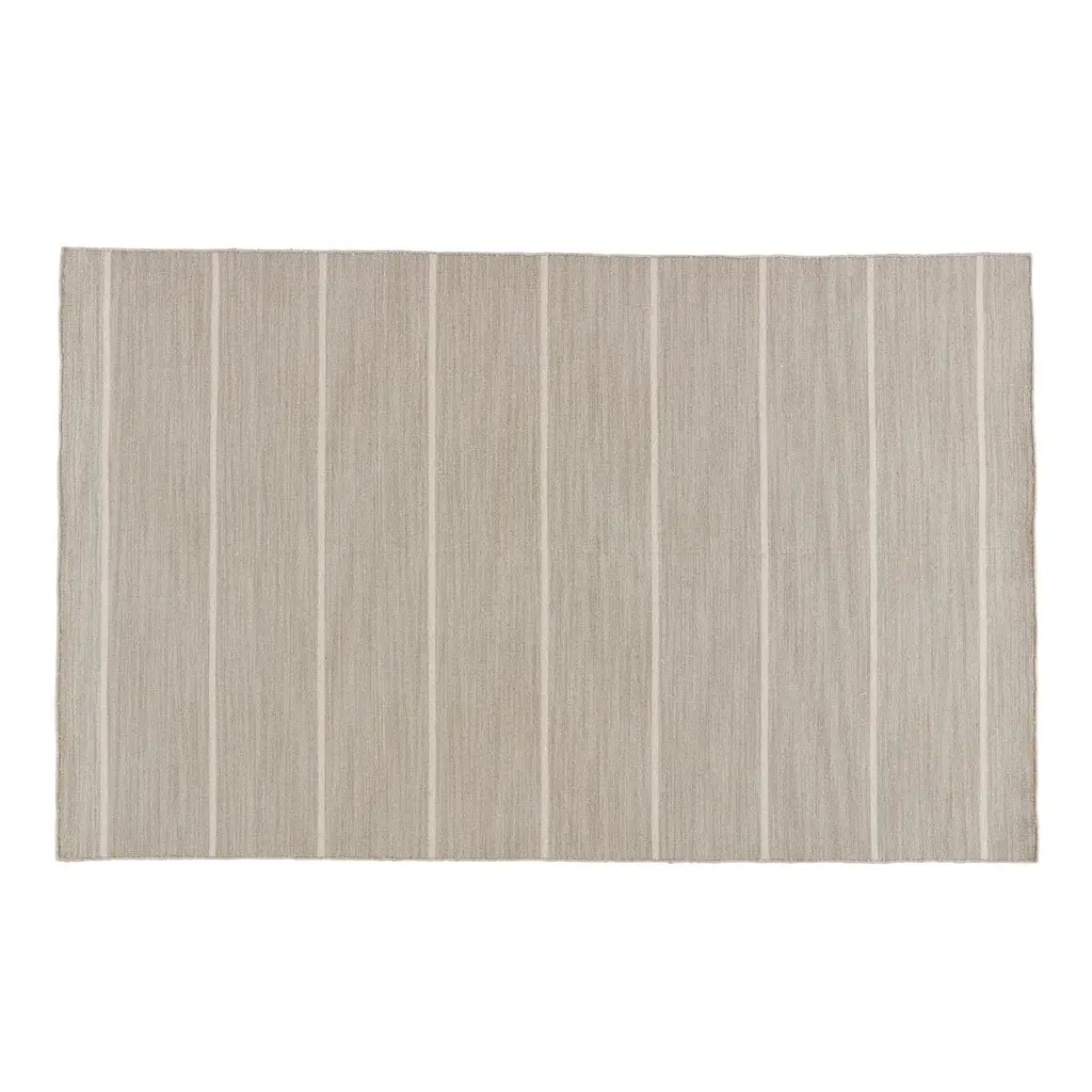 Put some art on the floor and walk all over it. This flat weave wool wonder sets a swath of stripes against a solid background. The alchemy of simplicity rendered in wool, or as we like to call it, “a cool ass looking rug”.