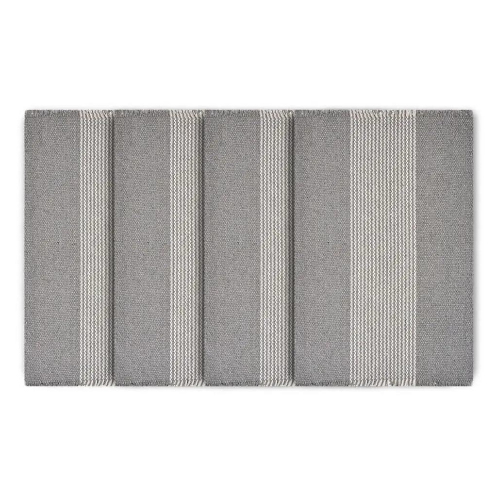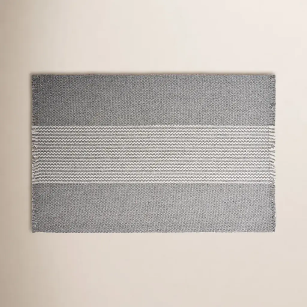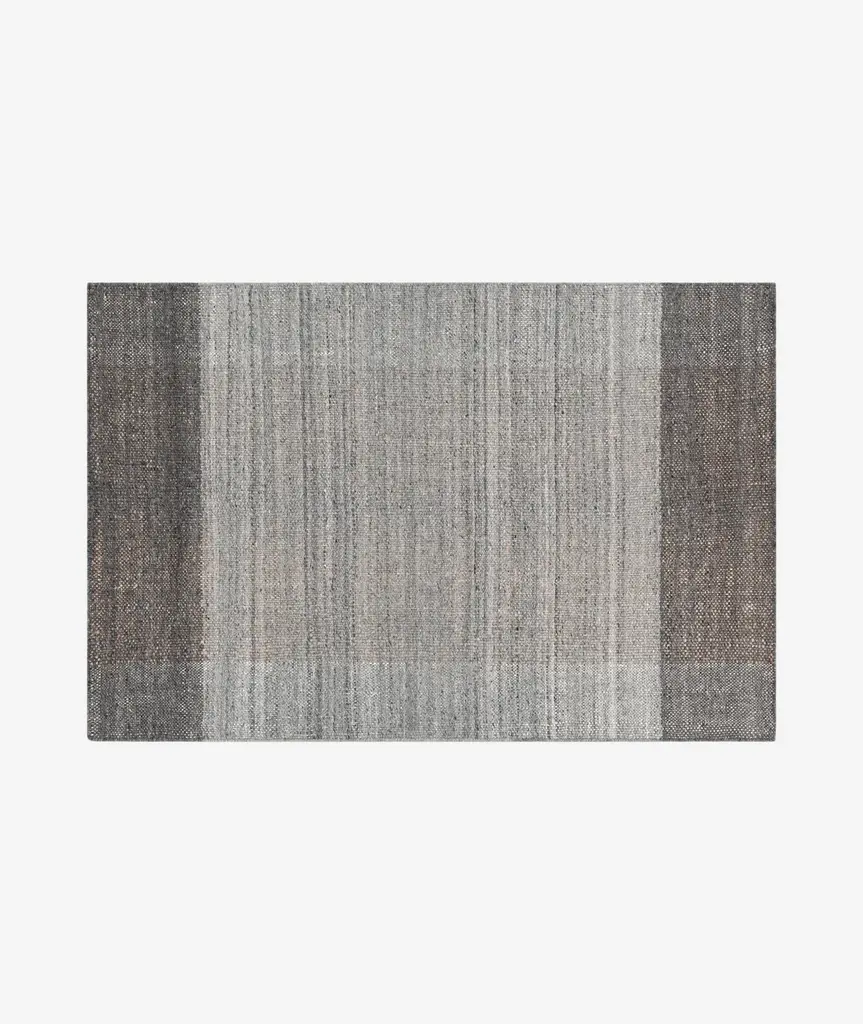 Put some art on the floor and walk all over it. This flat weave wool wonder sets a swath of stripes against a solid background. The alchemy of simplicity rendered in wool, or as we like to call it, “a cool ass looking rug”.