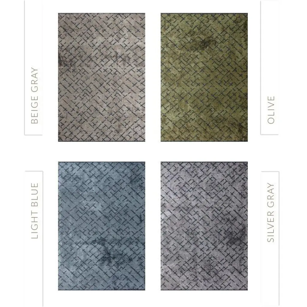 Light Blue And Silver Gray Tight Grid Abstract-Geo Pattern Rug With Shine