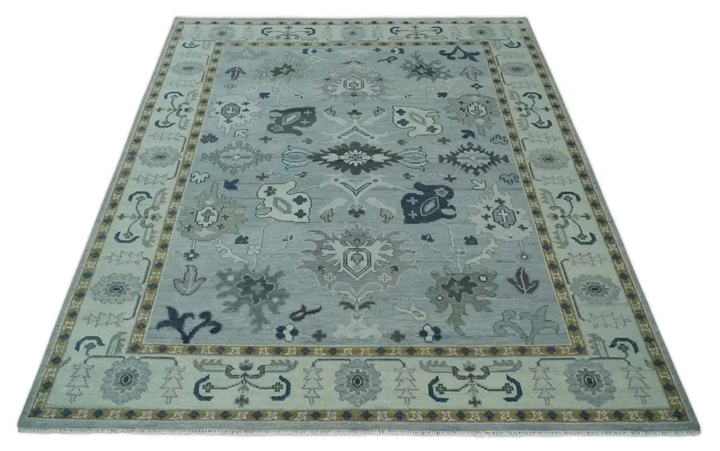 Light Blue Hand Knotted Traditional Oushak Multi Size Wool Area Rug - 2.6x9