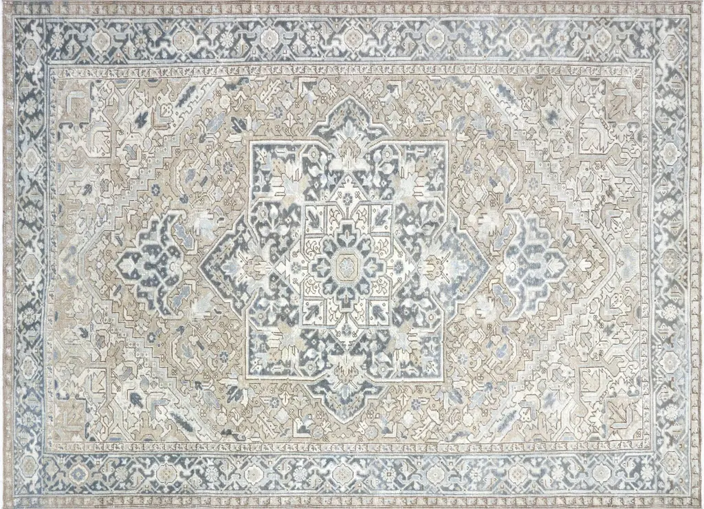 As perpetually fashionable as they are collectible, traditional Heriz luxury handmade rugs are skillfully woven in vibrant colors and emphatic geometric designs. The Heriz district of NW Persia has been weaving carpets for over a century, with geometric designs and tonalities ranging from mellow to saturated. Medallion layouts are by far the most common, but semi-stylized version of classic allover Persian patterns are found. Colors: taupe/ivory/cream.
