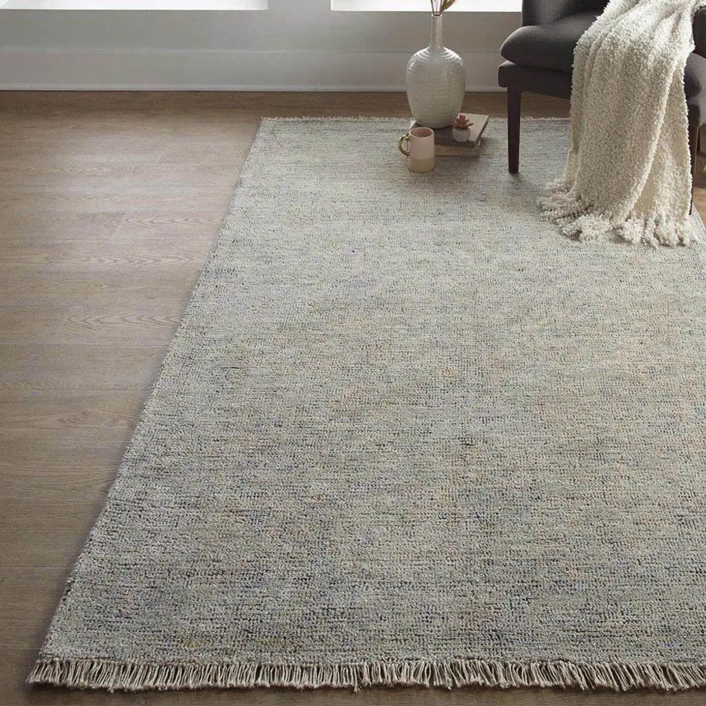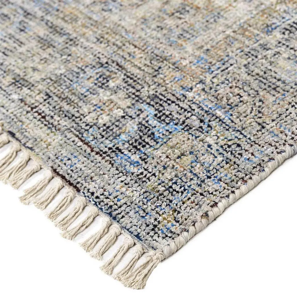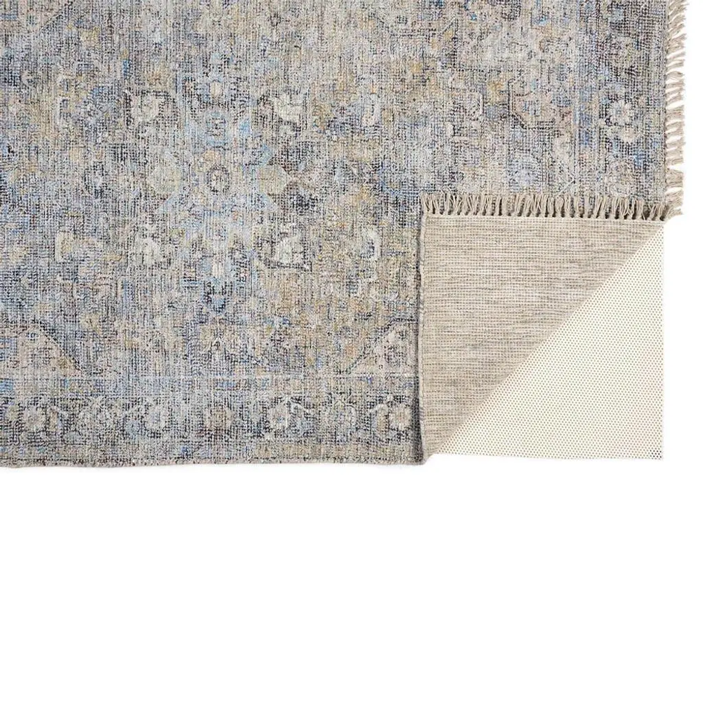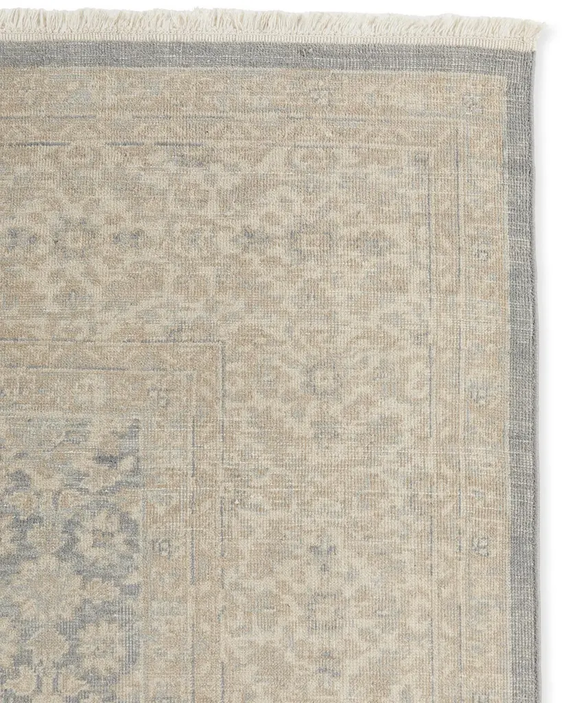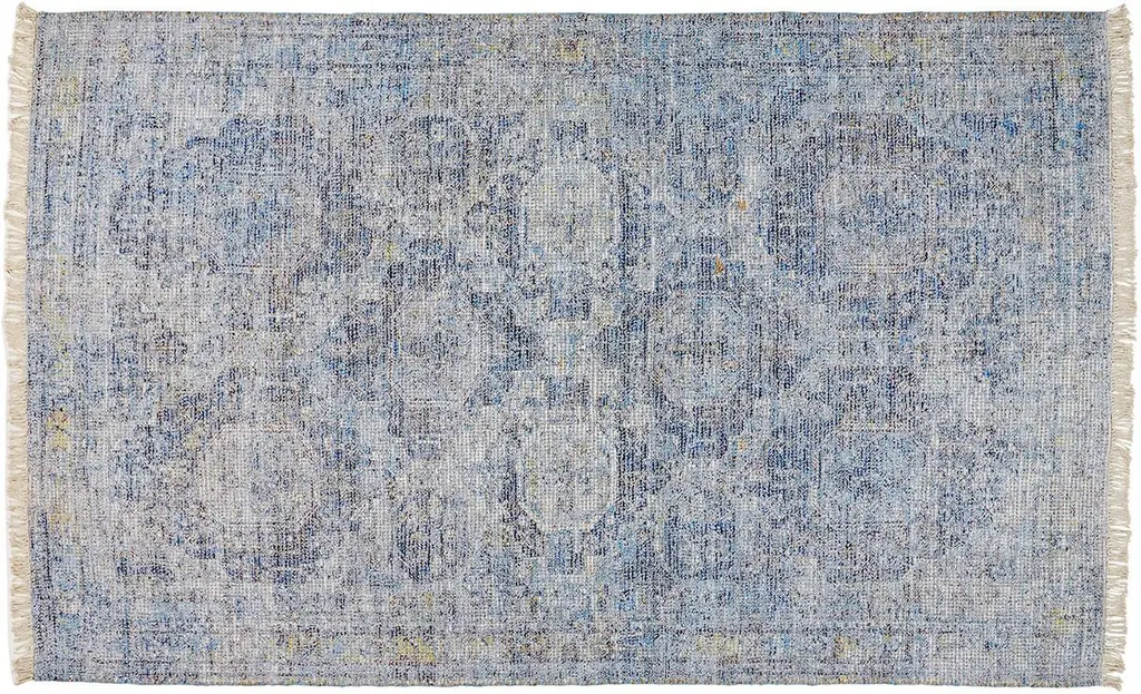 The handwoven 3’6” x 5’6” Lily rug features a beautifully ornate design in a serene palette of blue, beige, and grey. Crafted from wool and viscose, this durable, dreamy rug effortlessly grounds your space.