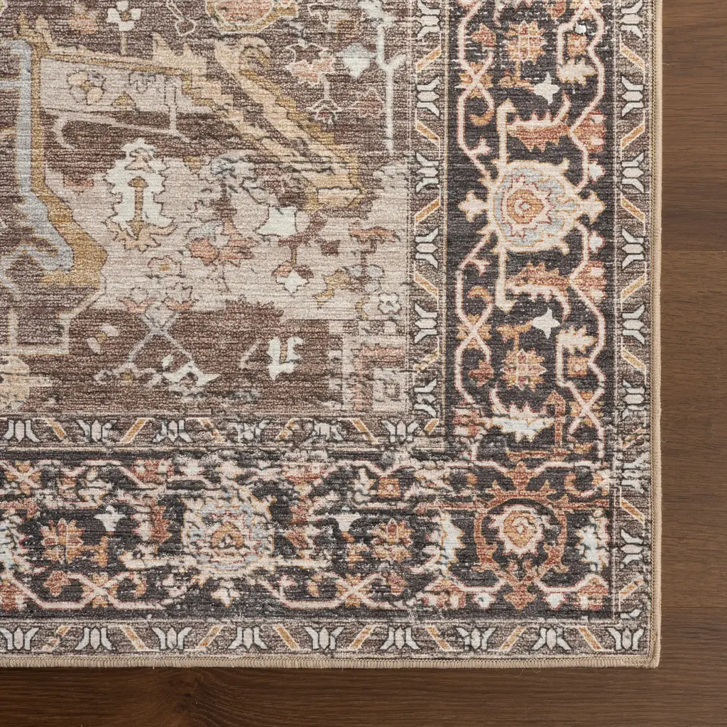 Lilyana Spill Proof Washable Rug | Dark Brown - 2' 6" X 8'