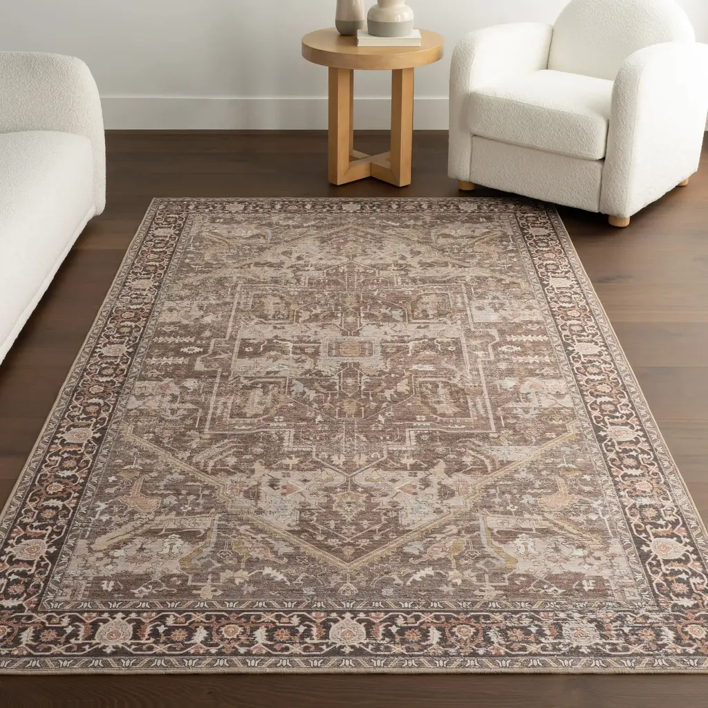 Lilyana Spill Proof Washable Rug | Dark Brown - 5' X 8'