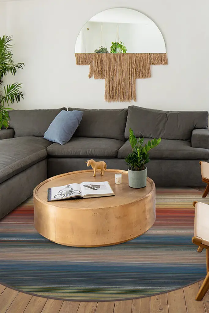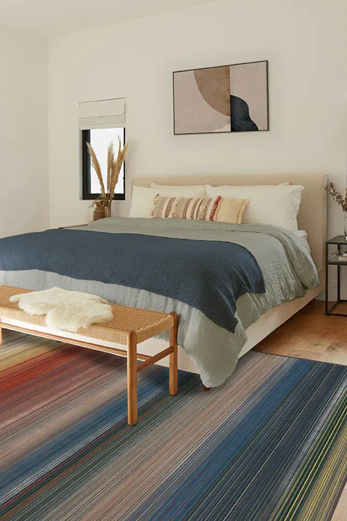 Make an eye-catching statement with our Linear Striped Multicolor rug. The myriad of striated colors is gently distressed to create this distinctive, stunning design. Easily complement your existing modern or contemporary home furnishing with this dashing floor decor piece.