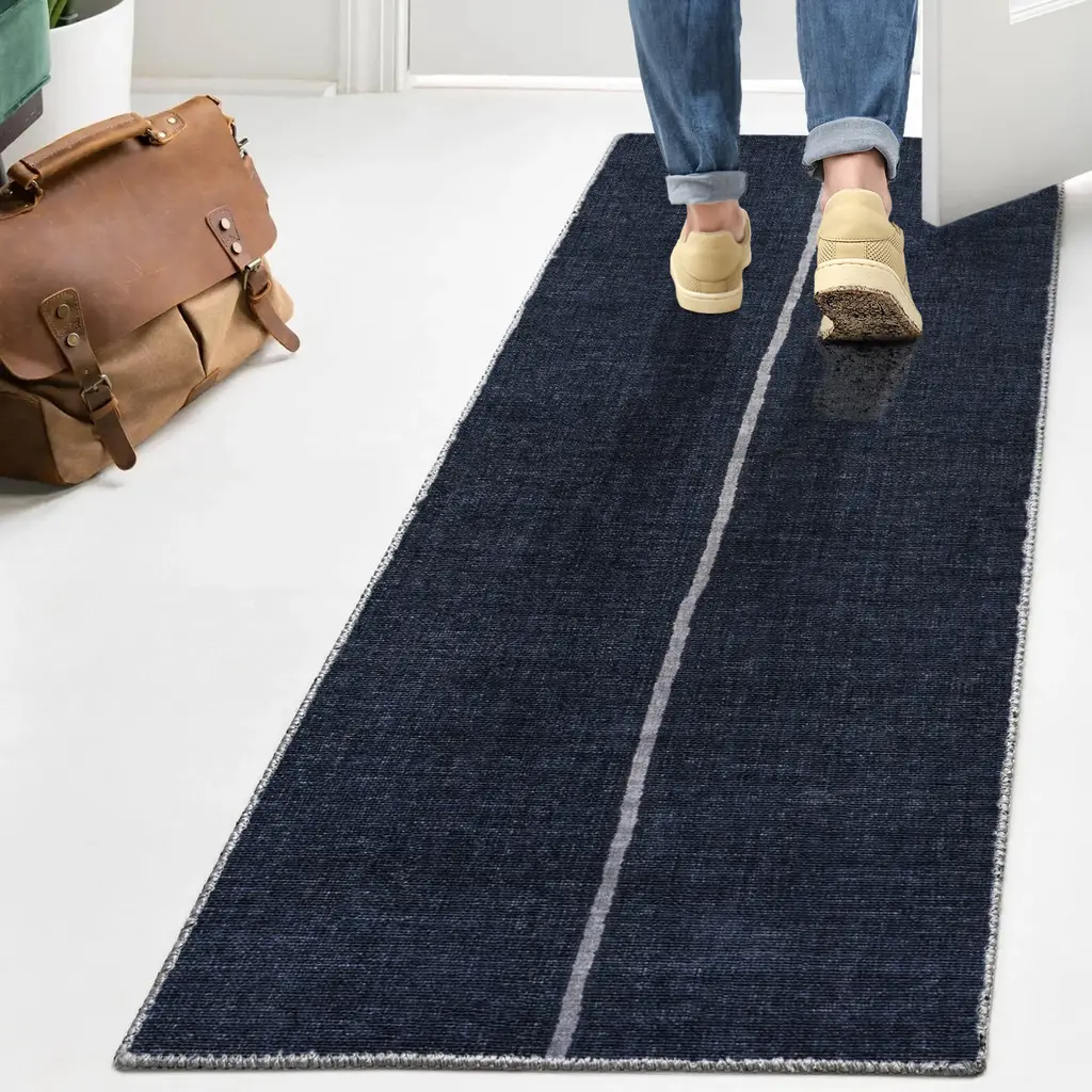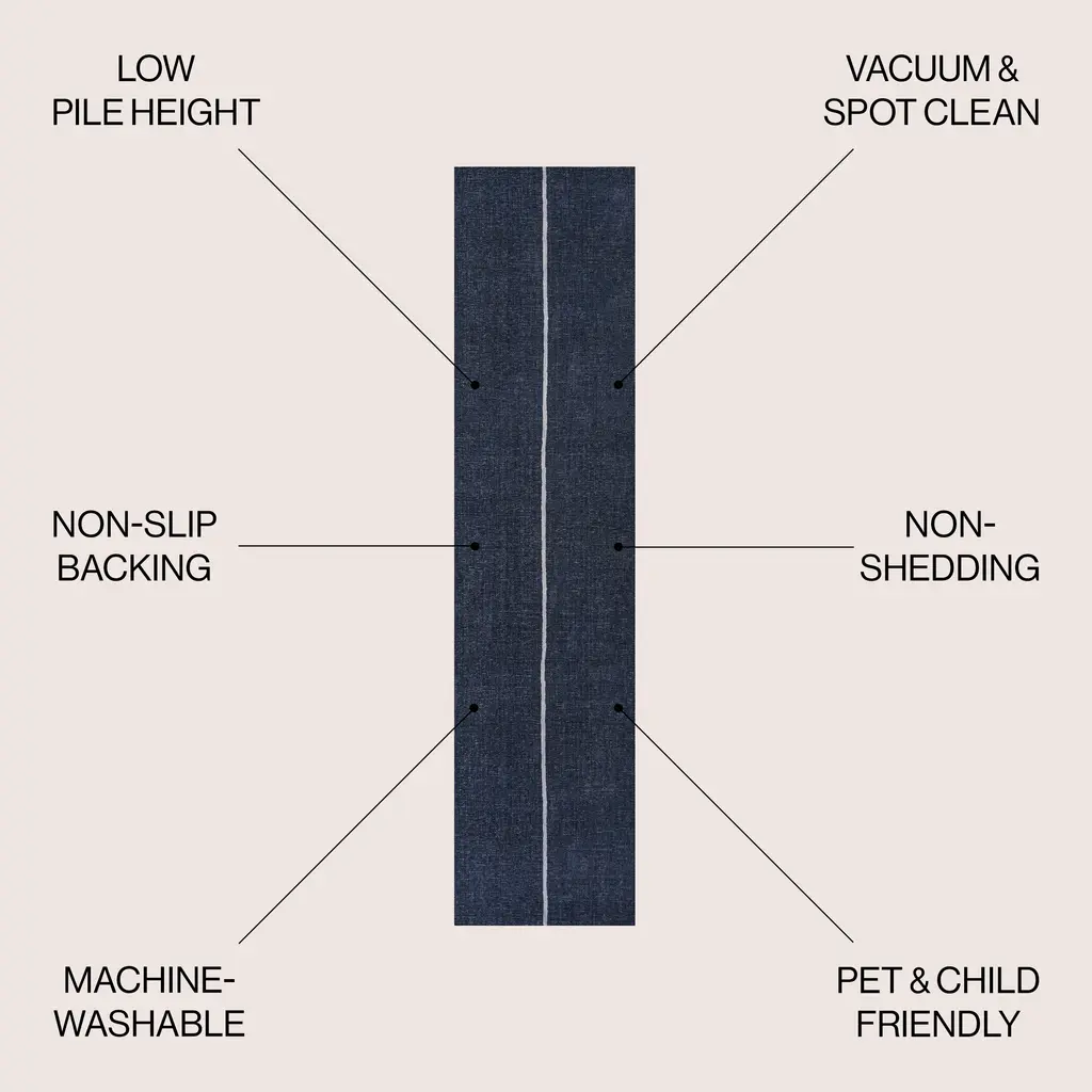 Linja Solid Centre Stripe Machine-Washable Area Rug - Blue / 5 X 8