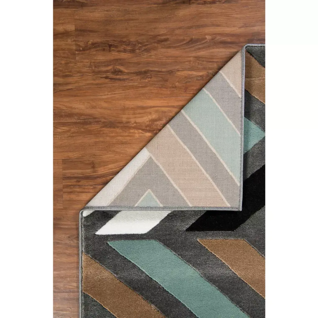 Linon 5'3"x7' Roma Herringbone Area Rug Gray/turquoise: Stain-resistant, Low Pile, Indoor, Polypropylene