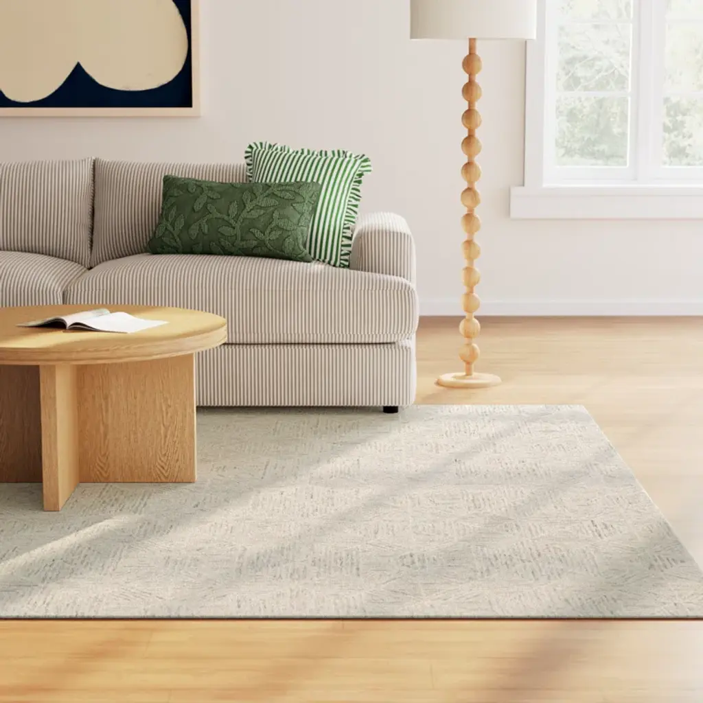 Add a touch of warmth and coziness to your living space with this hand-tufted wool and cotton area rug. Its versatile design blends seamlessly with various decor styles, from modern to traditional. Crafted for residential use, this rug is floor-heating safe, making it a great addition to any room. Although it doesn't have a non-slip backing, adding a rug pad underneath can help keep it in place. To maintain its fresh appearance, simply vacuum without a beater bar, spot clean with a dry cloth or shake off the dust. Enjoy the inviting atmosphere it brings to your home.
