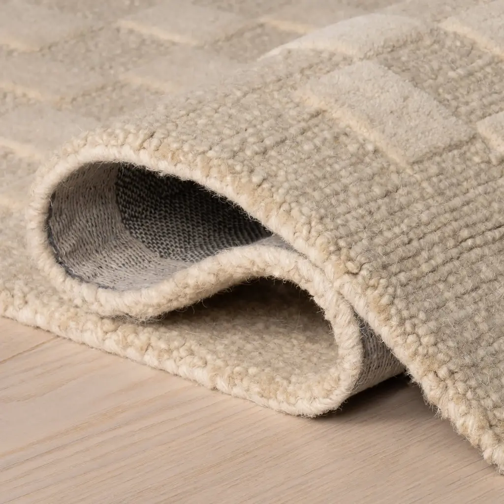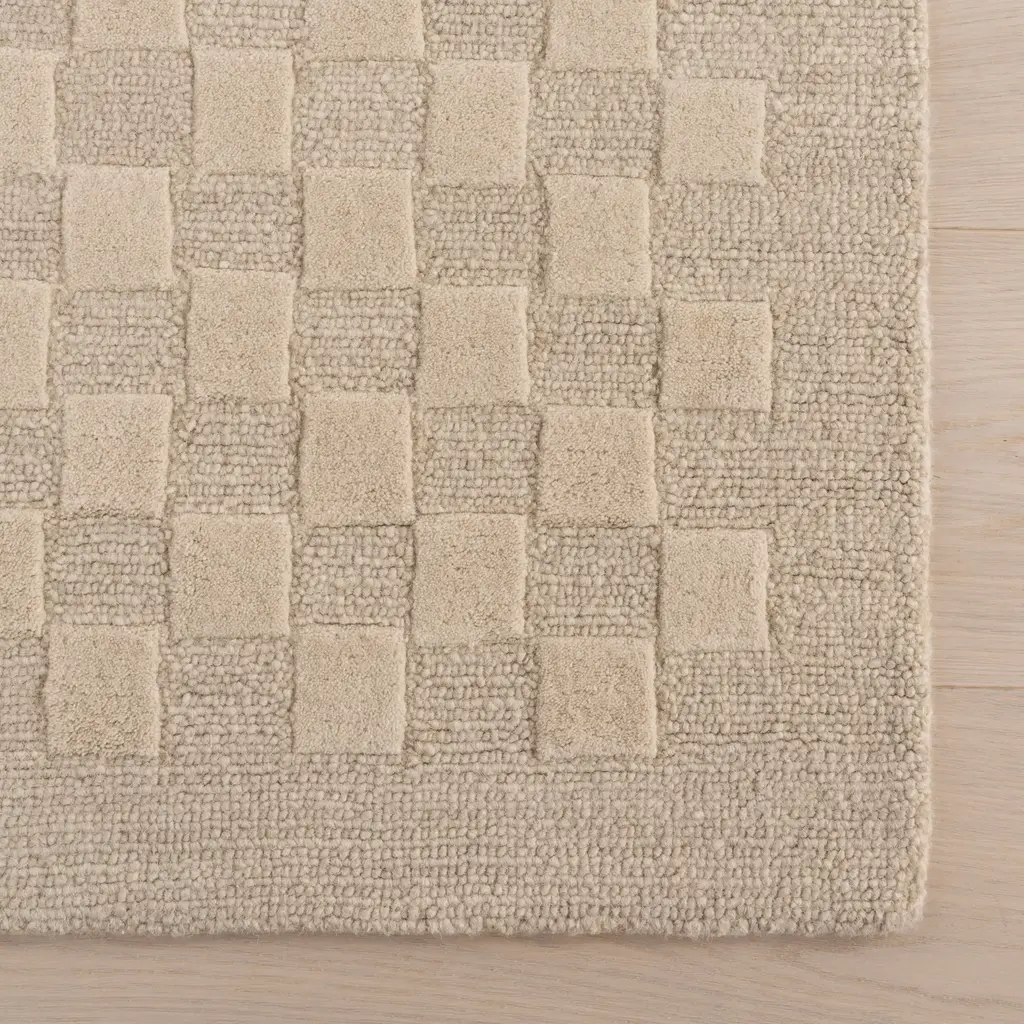 Linthea Modern Checkered Handmade Wool Rug | Ivory - 6' X 9'