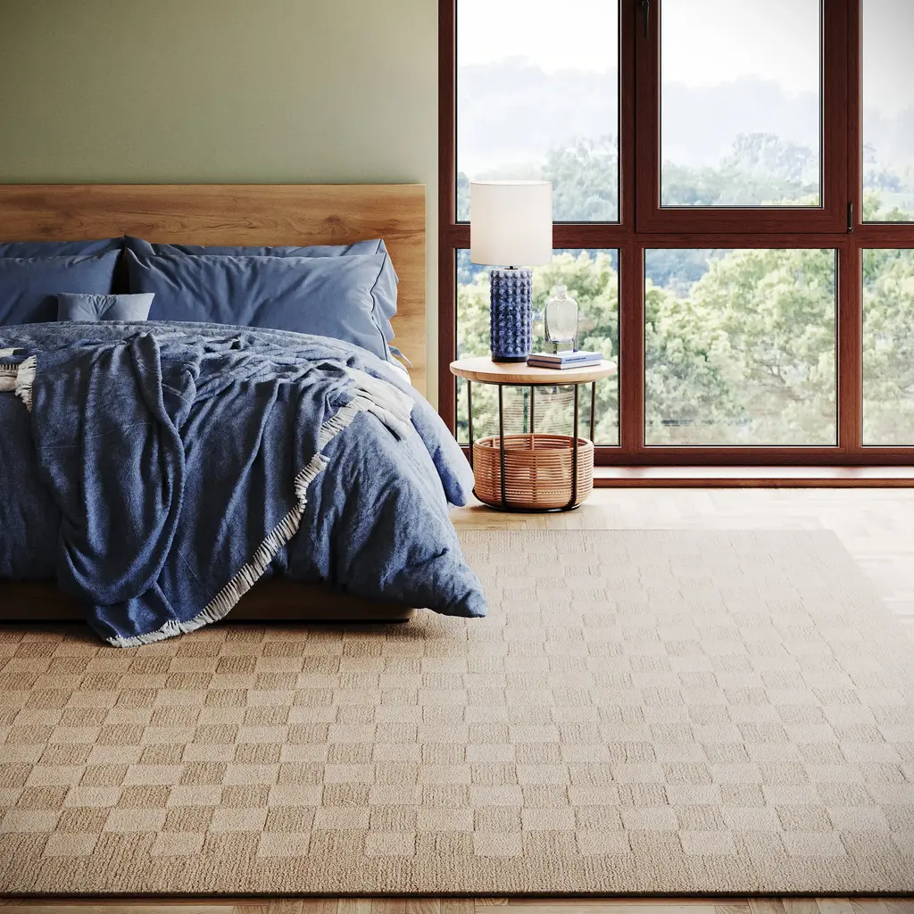 Linthea Modern Checkered Handmade Wool Rug | Ivory - 7' 6" X 9' 6"