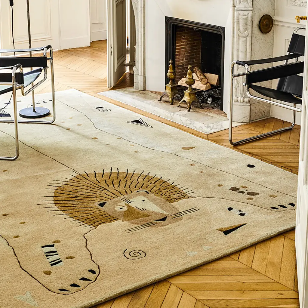 Warm and inviting, the Lion Rug from Toulemonde Bochart offers a stylish touch of whimsy to any room. Made from hand-tufted wool, its perfect for in front of a fireplace or as a child's bedroom rug, its cheerful face and captivating colors make it an undeniably luxurious and playful addition to your home. Features