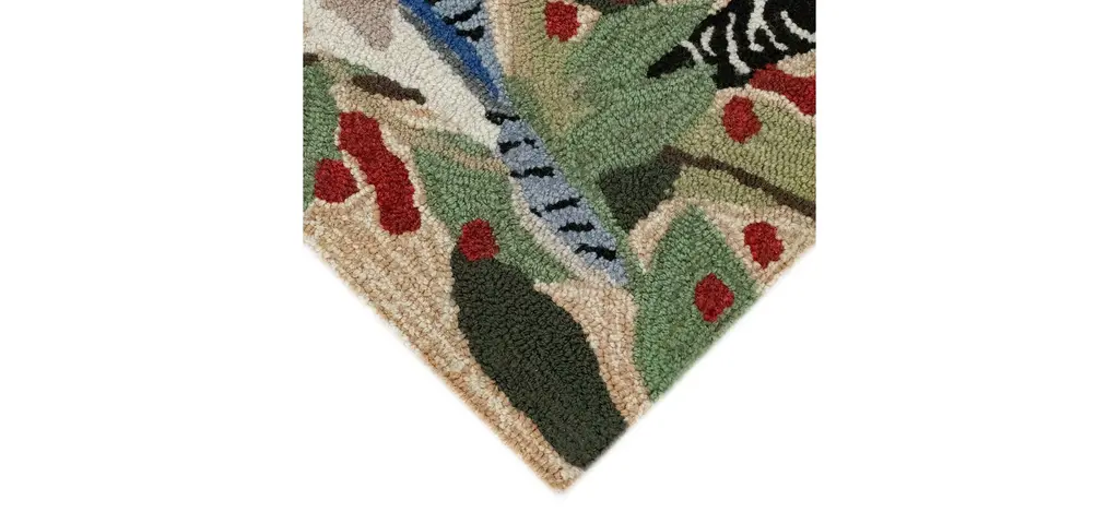 This Liora Manne Frontporch Bird Border Indoor/Outdoor Rug features delightful birds in a whimsical garden border setting design. Hand hooked of weather-resistant fiber, this collection is a blend of comfort, softness and durability. Frontporch is remarkably easy to clean and treated for added fade resistance. Limiting exposure to rain, moisture and direct sun will prolong mat life.