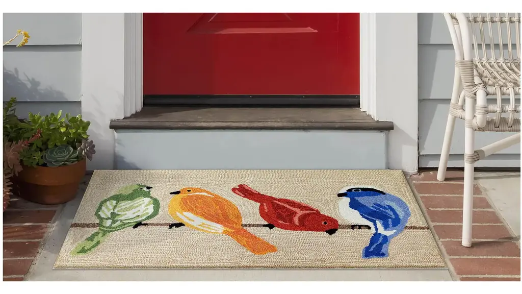 Create a welcoming entryway with our Liora Manne Frontporch Birds Indoor/Outdoor Rug which adds color and character to any indoor or outdoor space. Hand hooked of weather-resistant fiber, this collection is a blend of comfort, softness and durability. Frontporch is remarkably easy to clean and treated for added fade resistance. Limiting exposure to rain, moisture and direct sun will prolong mat life.