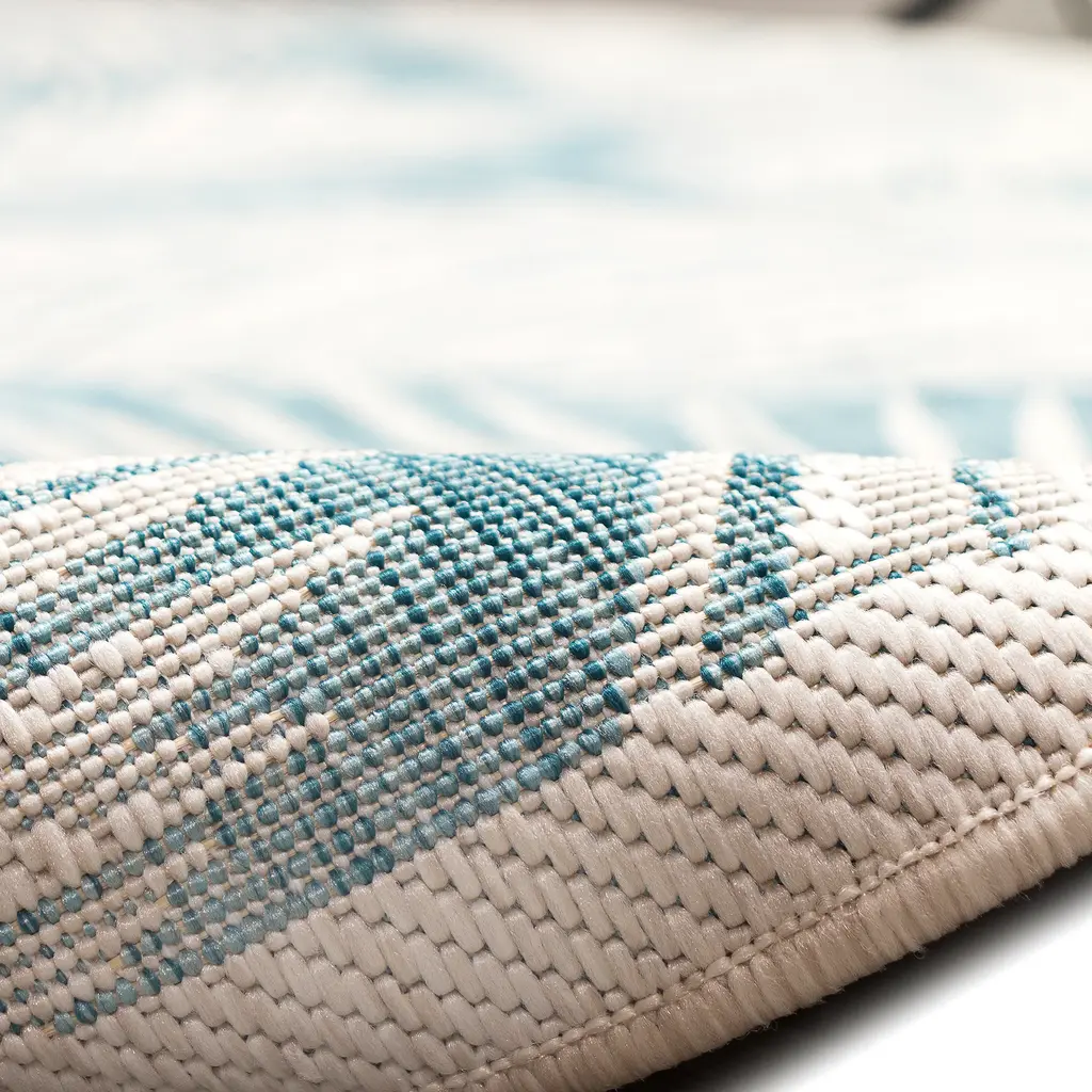 Add a tropical feel to your favorite space with our Liora Manne Carmel Fronds Indoor/Outdoor Rug. Full of vibrant color and delightful detail, this floral rug will refresh any area, indoors or out.The design features white leave on a blue background. It’s hard to believe that this rug can go outdoors, but that’s exactly what it’s designed for.Polypropylene is UV-stabilized, fade- and mildew-resistant. Ideal for dressing up outdoor spaces or for indoor areas with heavy traffic, pets or kids.Vacuum regularly. Sponge spots to clean. To clean full rug, gently rinse with a solution of mild detergent and water, then hose rug clean. Reducing exposure to rain and moisture will prolong rug life. Use of a rug pad is recommended. Imported