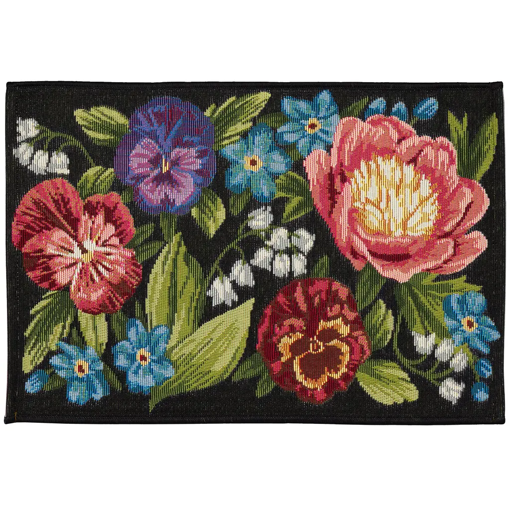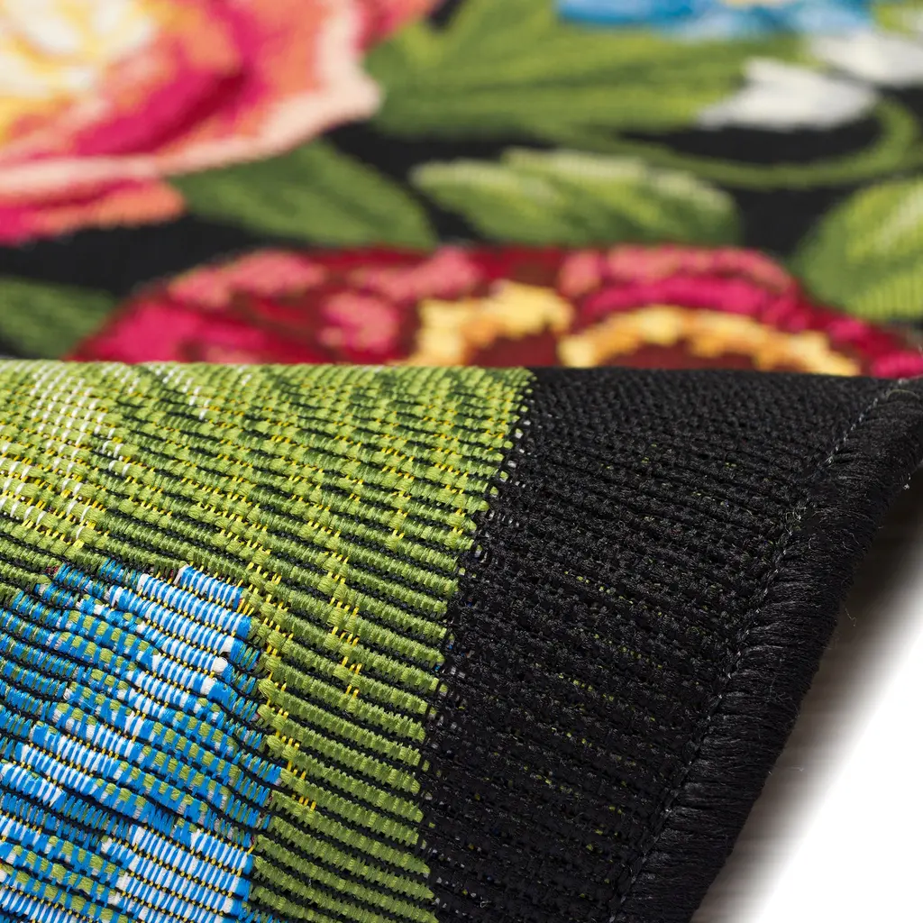 Dine and relax on a bed of beautiful flowers with our Secret Garden Polypropylene Rug. Full of vibrant color and delightful detail, this floral rug will refresh any area, indoors or out.The photo-realistic design features a striking bouquet of flowers on a solid background to make this rug pop. The multi-tonal color palette makes the detailed sunflowers stand out with gorgeous shading and highlights. It’s hard to believe that this rug can go outdoors, but that’s exactly what it’s designed for.Polypropylene is UV-stabilized, fade- and mildew-resistant. Rug cleans easily with mild soap and water, making it ideal for dressing up outdoor spaces or for indoor areas with heavy traffic, pets or kids.
