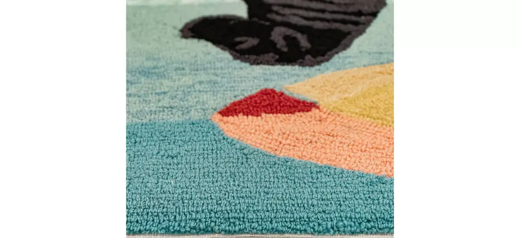 Add some whimsy and personality to your space with our delightful Liora Manne Frontporch Parasol And Pup Indoor/Outdoor Rug, featuring a pup under an umbrella by the ocean. A perfect little accent to your d_cor. Hand hooked of weather-resistant fiber, this collection is a blend of comfort, softness and durability. Frontporch is remarkably easy to clean and treated for added fade resistance. Limiting exposure to rain, moisture and direct sun will prolong mat life.