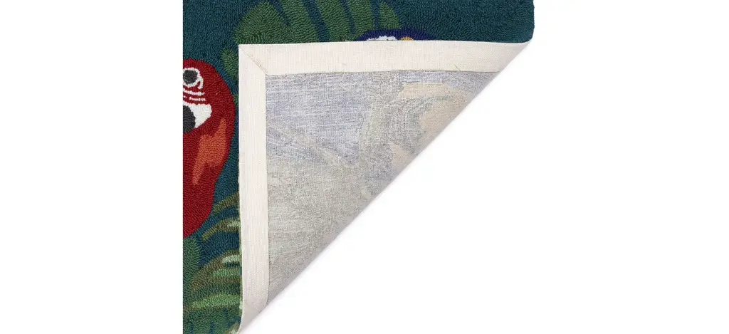 Transport yourself to paradise! This tropical Liora Manne Frontporch Parrot Pals Indoor/Outdoor Rug features two brightly colored parrots perched happily in a palm tree. Saturated colors of blue, green, red, and yellow make this the perfect accent piece for any space in your home. The material is hand hooked to create both softness and durability with weather resistant and added fade resistant treatment that is remarkably easy to clean. These pieces are perfect for you patio, entryway, bathroom, laundry room and kitchen making this the ideal indoor or outdoor rug. Limiting exposure to rain, moisture and direct sun will prolong rug life.