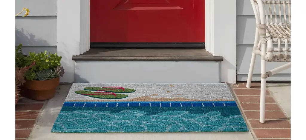 The Liora Manne Frontporch Poolside Indoor/Outdoor Rug adds a splash of color to any indoor or outdoor living space. The perfect poolside accessory. Hand hooked of weather-resistant fiber, this collection is a blend of comfort, softness and durability. Frontporch is remarkably easy to clean and treated for added fade resistance. Limiting exposure to rain, moisture and direct sun will prolong mat life.